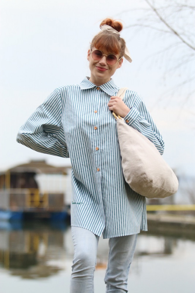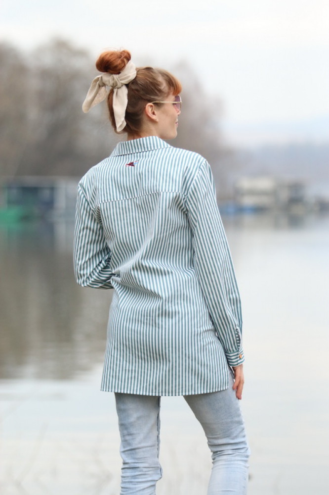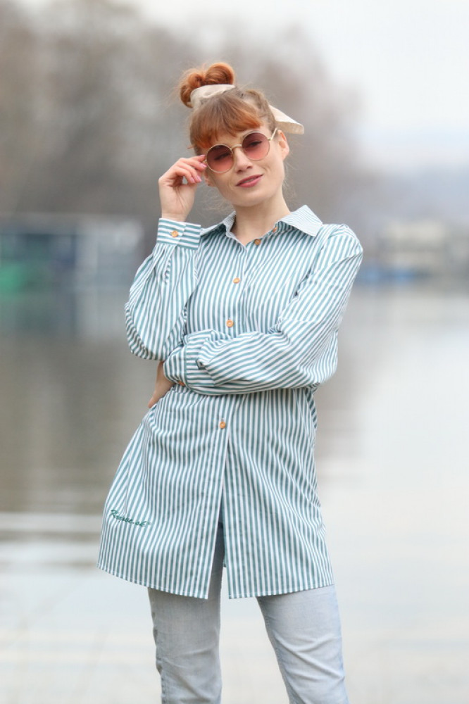 Košeľa má pohodlný, mierne voľný strih, ktorý sa ľahko kombinuje s džínsami, nohavicami aj sukňou. Jemné vertikálne pásiky opticky predlžujú postavu a dodávajú košeli elegantný, no zároveň ležérny vzhľad. Prírodné gombíky dopĺňajú čistý dizajn.