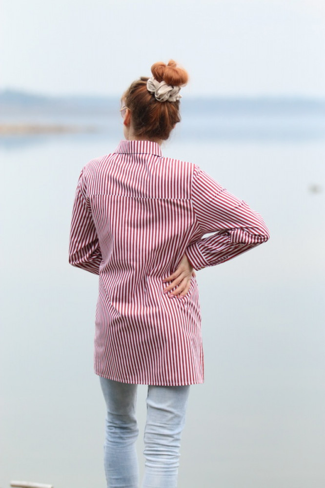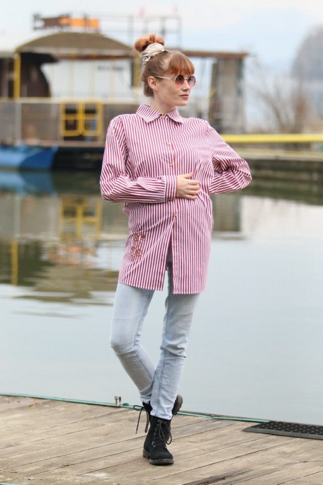 Košeľa má pohodlný, mierne voľný strih, ktorý sa ľahko kombinuje s džínsami, nohavicami aj sukňou. Jemné vertikálne pásiky opticky predlžujú postavu a dodávajú košeli elegantný, no zároveň ležérny vzhľad. Prírodné gombíky dopĺňajú čistý dizajn.