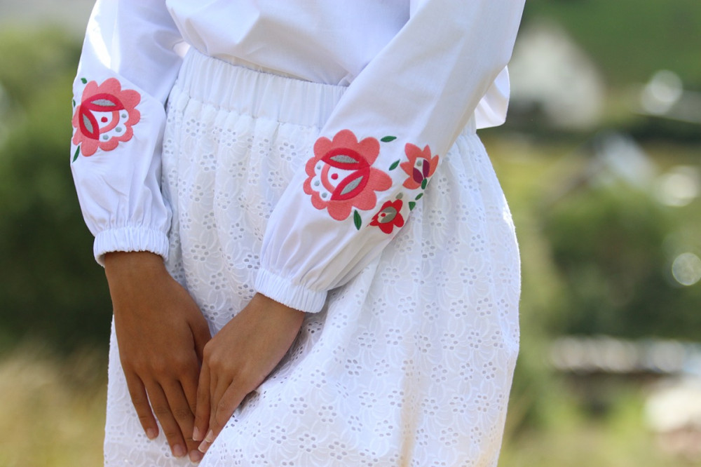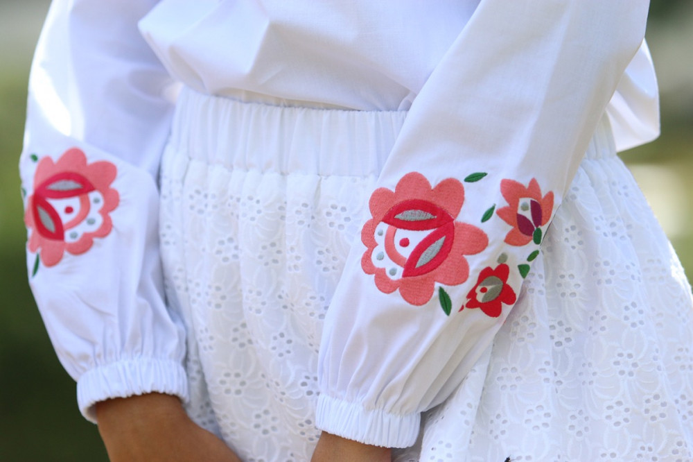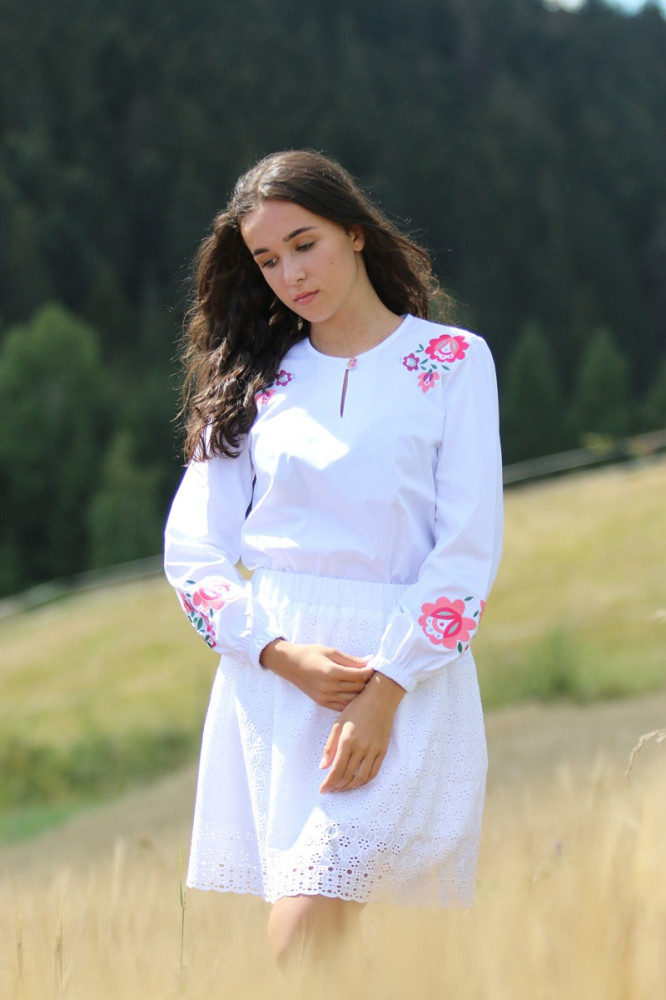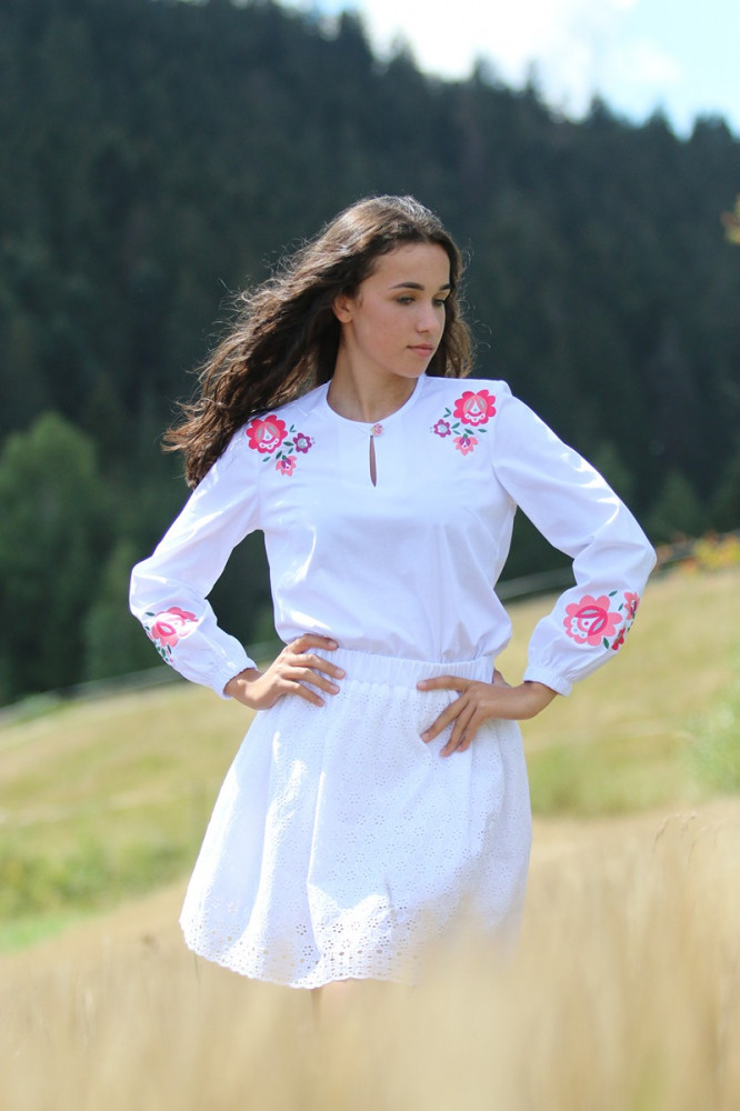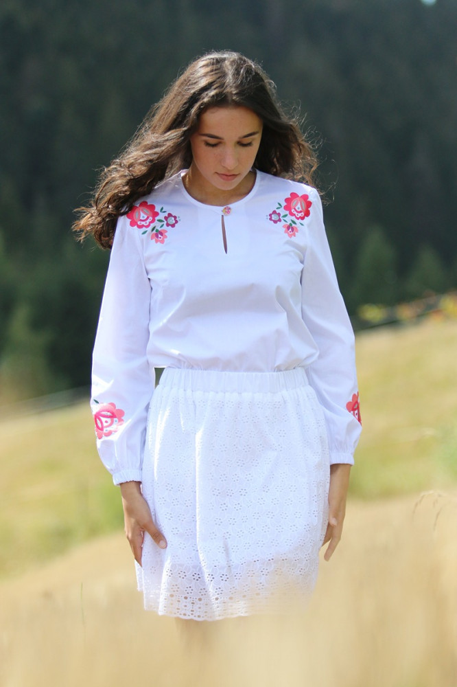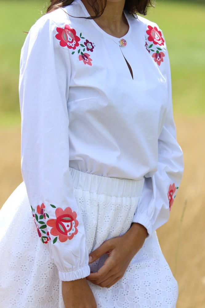 Biela bavlnená vyšívaná blúzka značky Krojove.sk spája ľahkosť, pohodlie a krásu slovenskej tradície.
