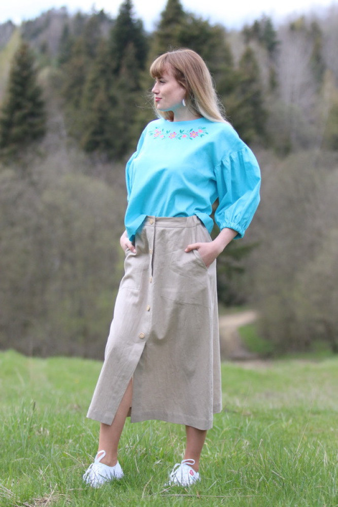Táto štýlová ľanová vyšívaná blúzka je ideálnou voľbou pre ženy, ktoré hľadajú spojenie pohodlia, kvality a jemného dizajnu. Je príjemná na dotyk, priedušná a vhodná na každodenné nosenie počas teplejších dní.
