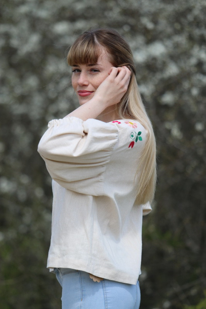 Vyšívaná ľanová blúzka Smotanové očarenie
