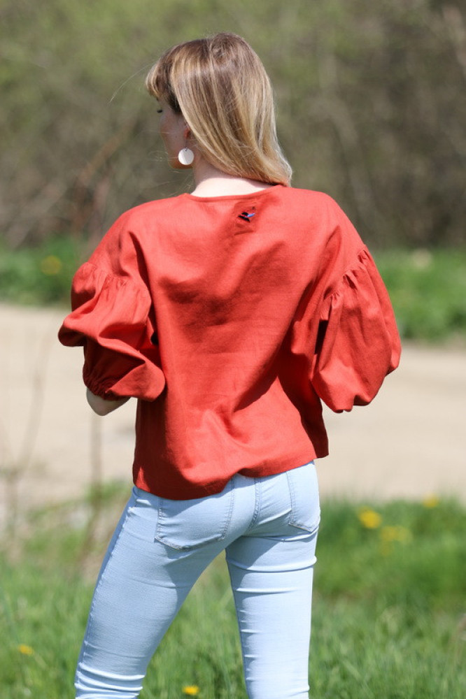 Voľnejší strih a jemne naberané rukávy poskytujú maximálne pohodlie a voľnosť pohybu. Blúzka sa skvelo hodí k sukniam, ľanovým nohaviciam aj džínsom