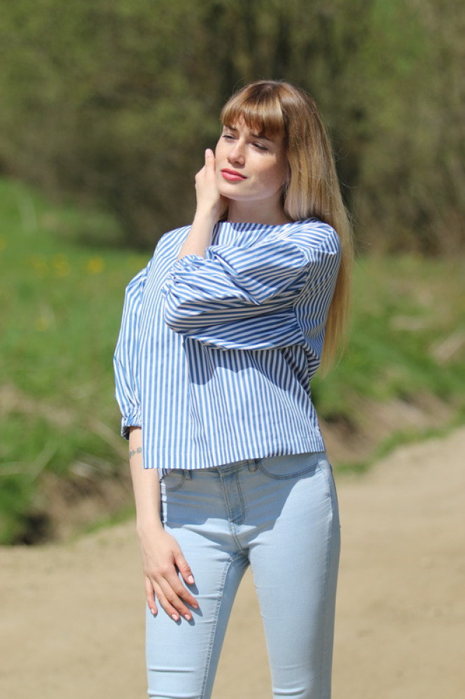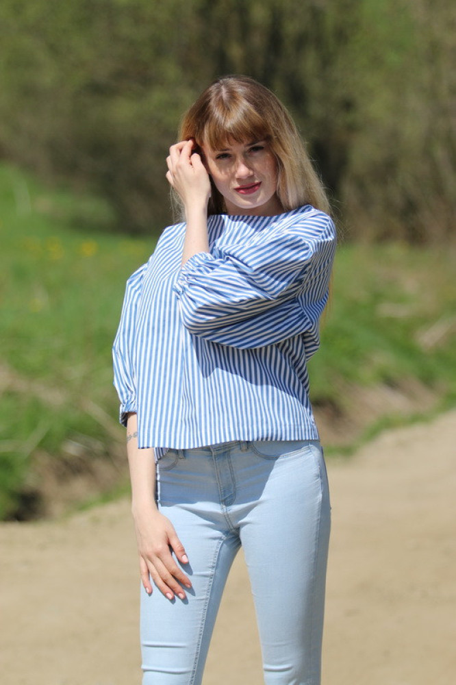 Trendy pásik bavlnená blúzka oversize strihu s nadčasovými puff rukávmi ukončenými do gumičky. Je pohodlná, veľmi jemná, ľahká, priedušná a vhodná na celoročné nosenie. Kombinovateľná ako k džínsom, tak aj k sukničke.