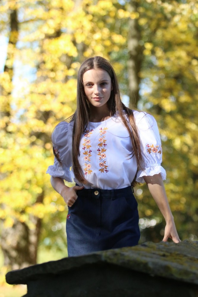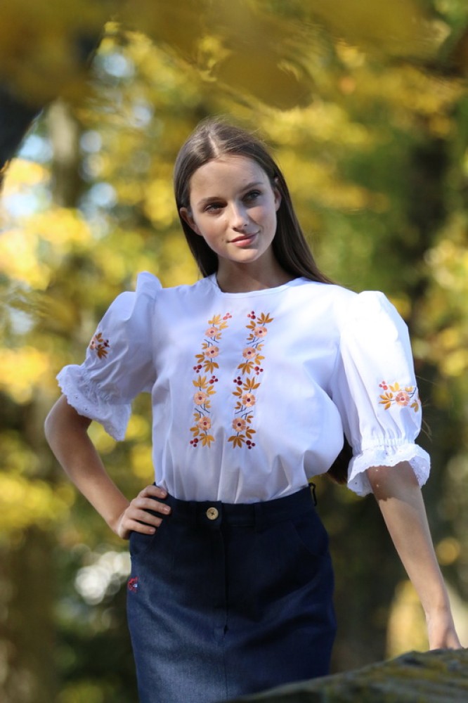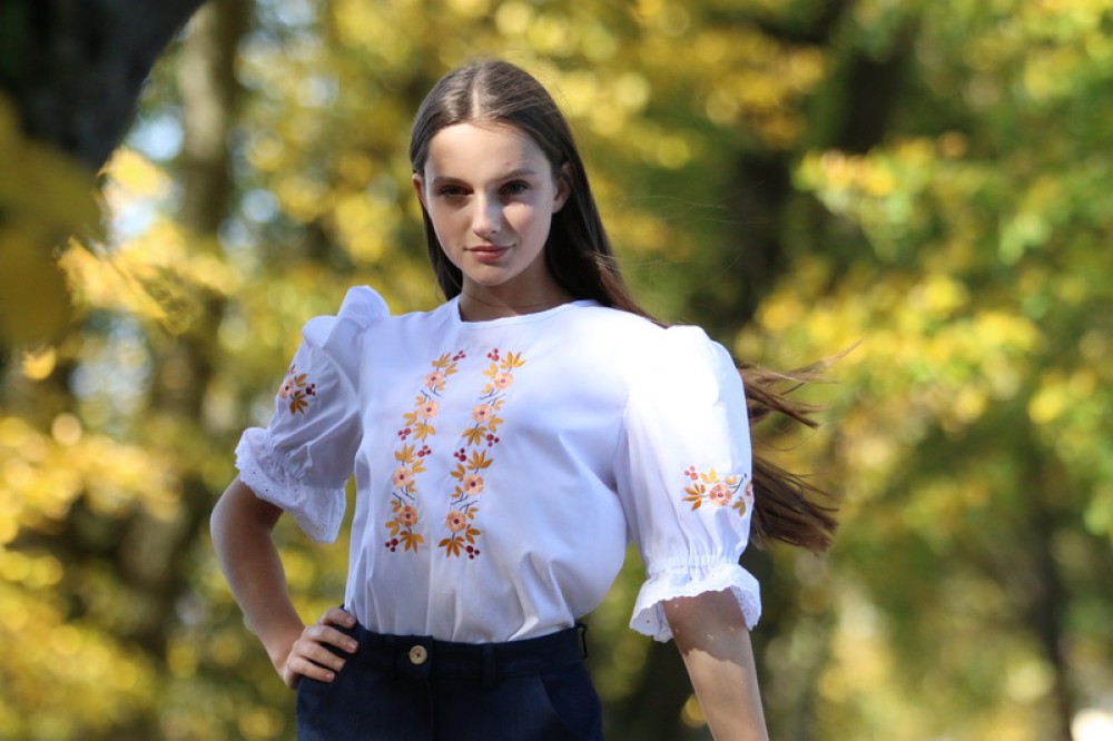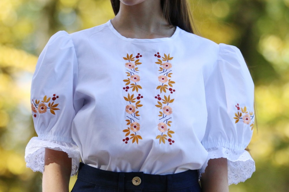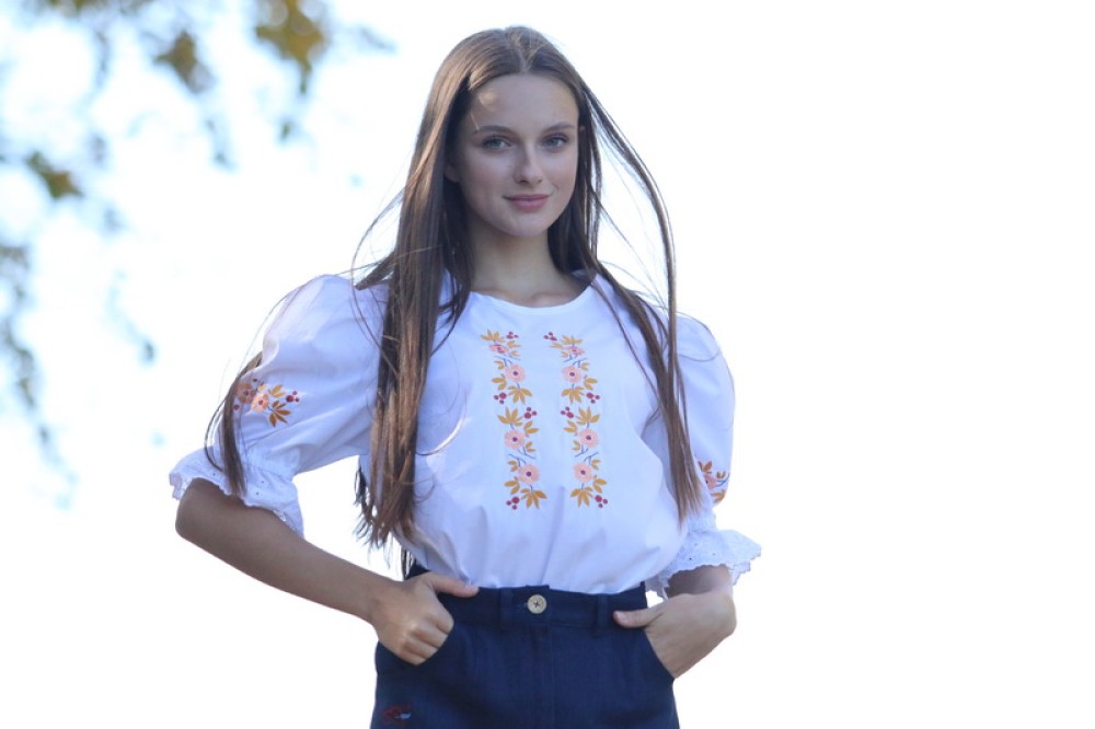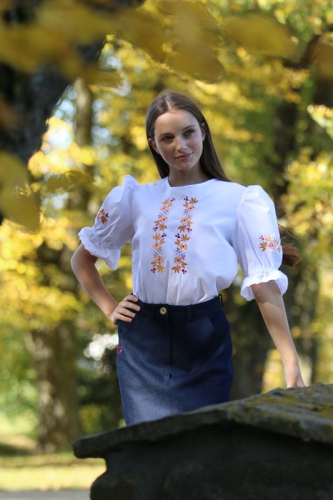 Vyšívaná bavlnená blúzka s krátkym ľudovým balónikovým rukávikom ukončeným madeirovou čipkou. Pôsobí elegantne, sviežo, ľudovo a zároveň trendy . Je pohodlná, veľmi jemná, ľahká, priedušná a vhodná na celoročné nosenie. Kombinovateľná ako k nohaviciam i k sukni. Kombinovateľná ako k nohaviciam i k sukni.