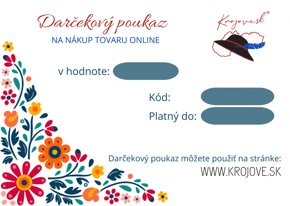 Darčekový poukaz z nášho ľudového obchodíku je dokonalým darom pre milovníkov slovenskej tradície, výšiviek a prírodných materiálov. Obdarovaný si môže vybrať produkty podľa svojich predstáv, čím získa jedinečný a osobitý darček.