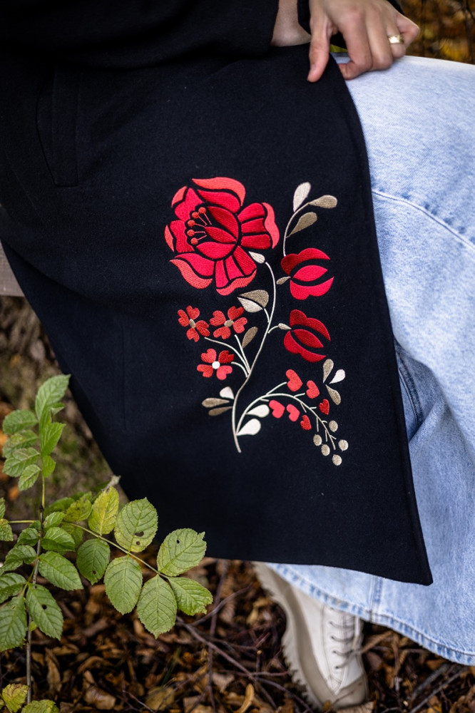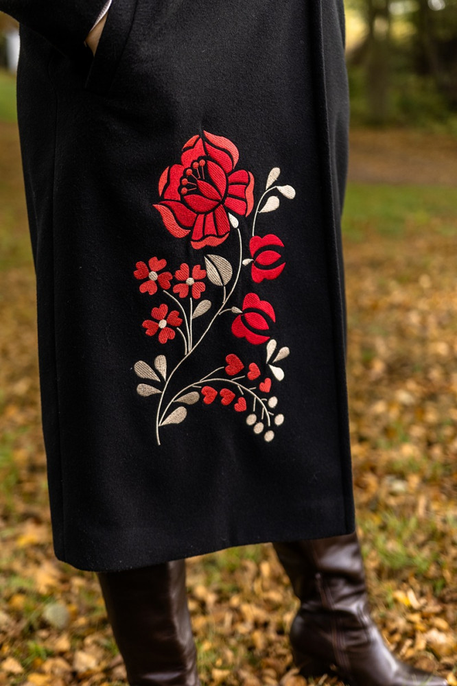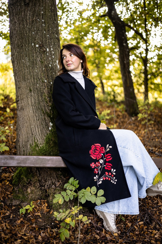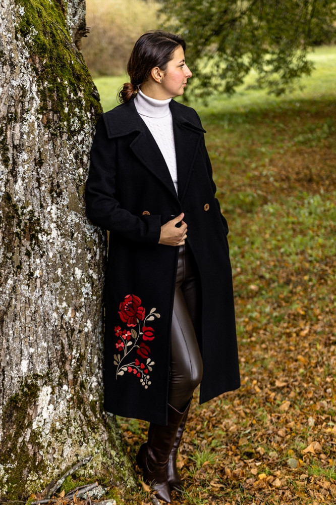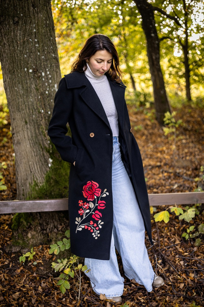 Zahaľte sa do tepla, štýlu a výnimočnosti. Tento dámsky čierny kabát Krojove.sk s kontrastnou výšivkou je dokonalou kombináciou modernej elegancie a tradičných motívov. Vďaka kvalitnému materiálu a precíznemu spracovaniu sa stane vaším obľúbeným spoločníkom počas jesene aj zimy.