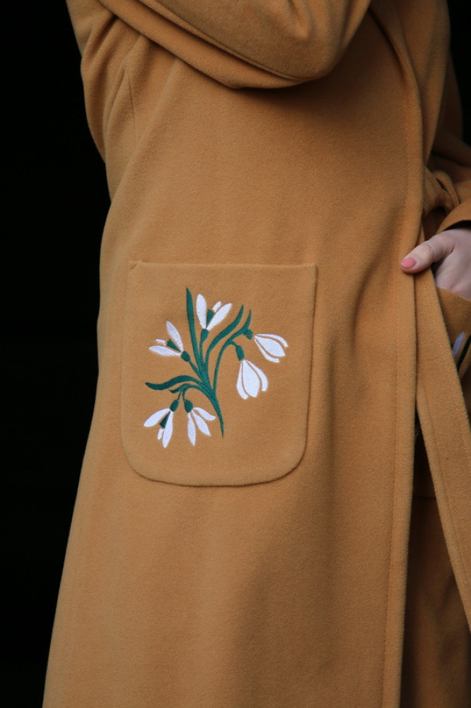 Kvalitne spracovaný vyšívaný kabátik nadčasového oversize klasického rovného strihu. Má všitý opasok so zaväzovaním na bočnej strane, dĺžku po kolená a fazónku, ktorá ho robí zároveň aj elegantným. Je vhodný do prechodného obdobia jar/jeseň. Na prednej strane má všité 2 hlboké vrecká. Je vhodný pre dámy, ktoré nechcú splynúť v dave.