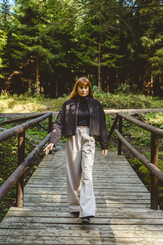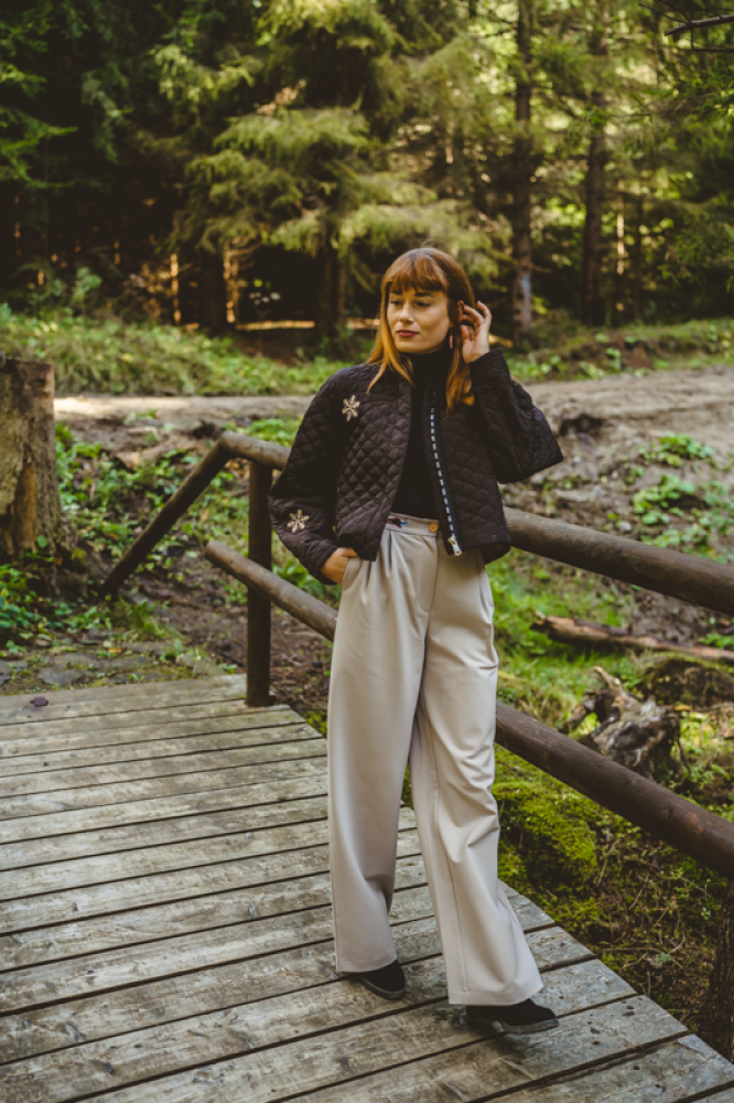 Štýlová, hrejivá a originálna. Vyrobená z ľahkého, ale teplého materiálu, poskytuje komfort počas chladnejších dní. Kratší, boxy strih pôsobí žensky a zároveň uvoľnene, vďaka čomu ju ľahko skombinujete s džínsami, sukňou či šatami.