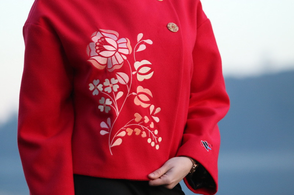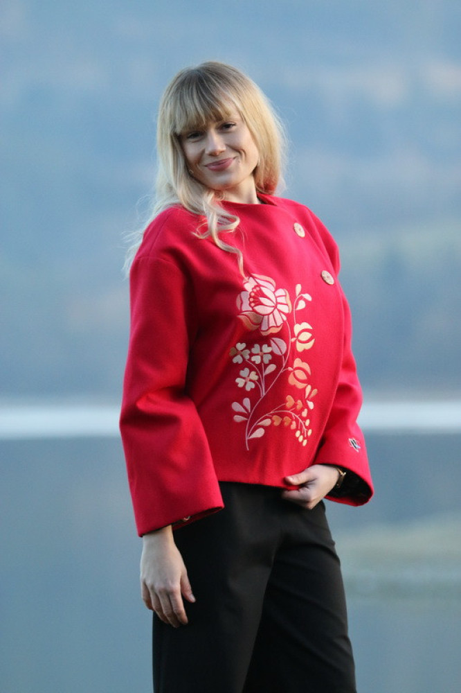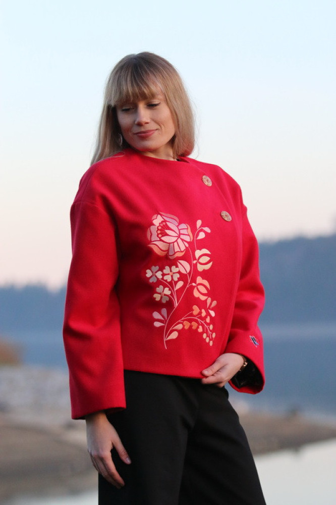 Krátky vyšívaný kabátik oversize strihu je vhodný na prechodné obdobie jar/ jeseň/zima. Je podšitý a príjemný na dotyk. Originálny kúsok pre dámy, ktoré nechcú splynúť v dave.