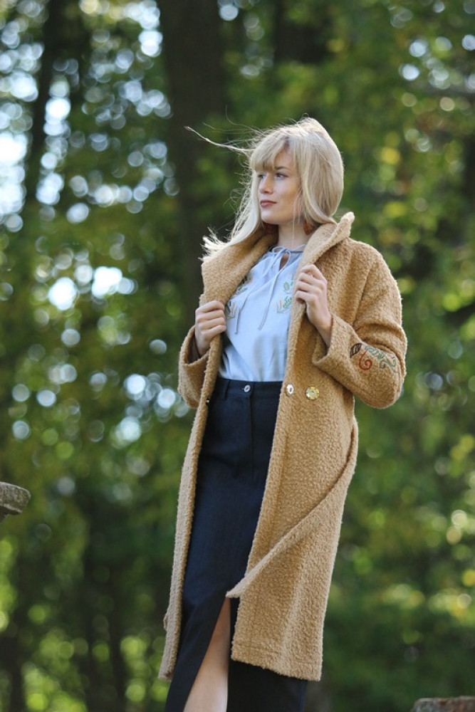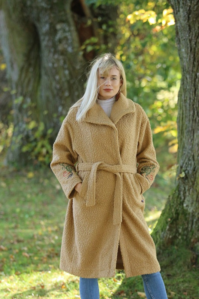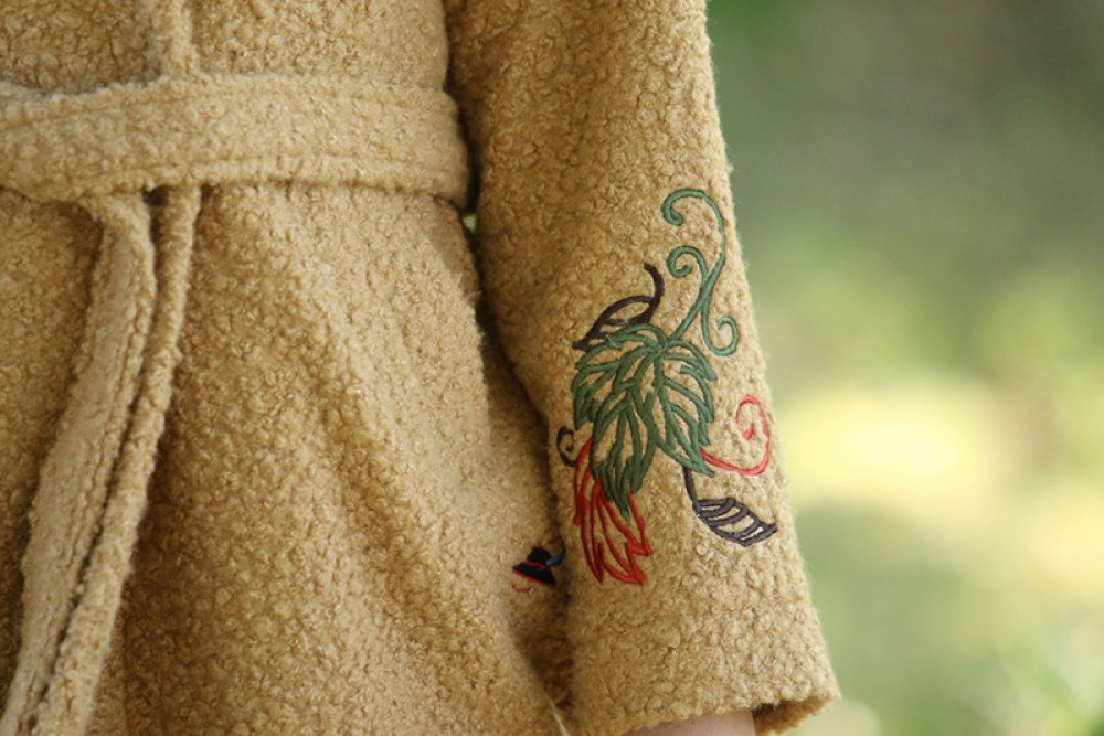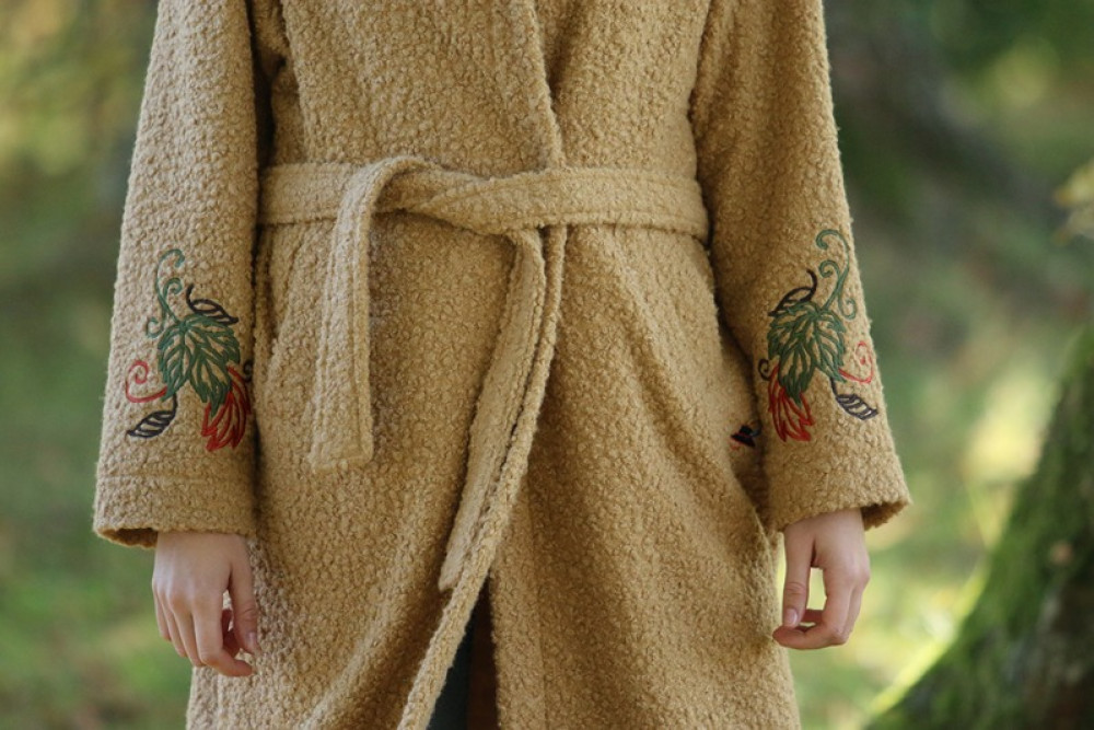 Jedinečný detail: Golier zdobí luxusná, precízna výšivka, ktorá dodáva kabátu nezameniteľný a originálny charakter. Opasok v páse umožňuje zvýrazniť siluetu. Ideálna voľba pre ženu, ktorá hľadá teplo, kvalitu a jedinečný dizajn.
