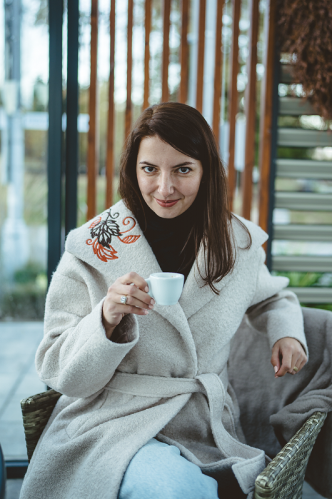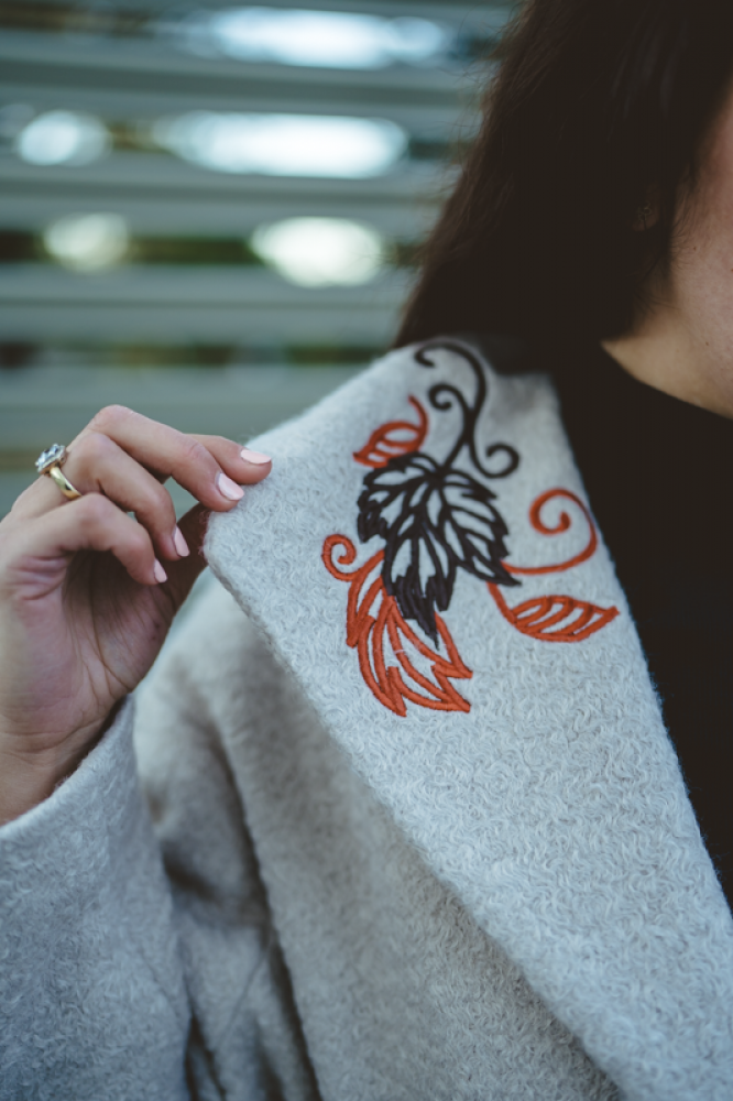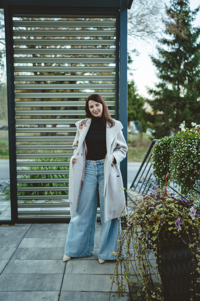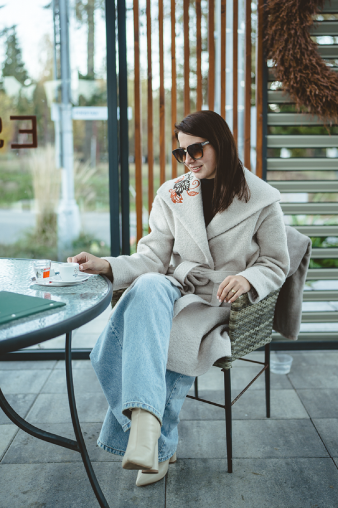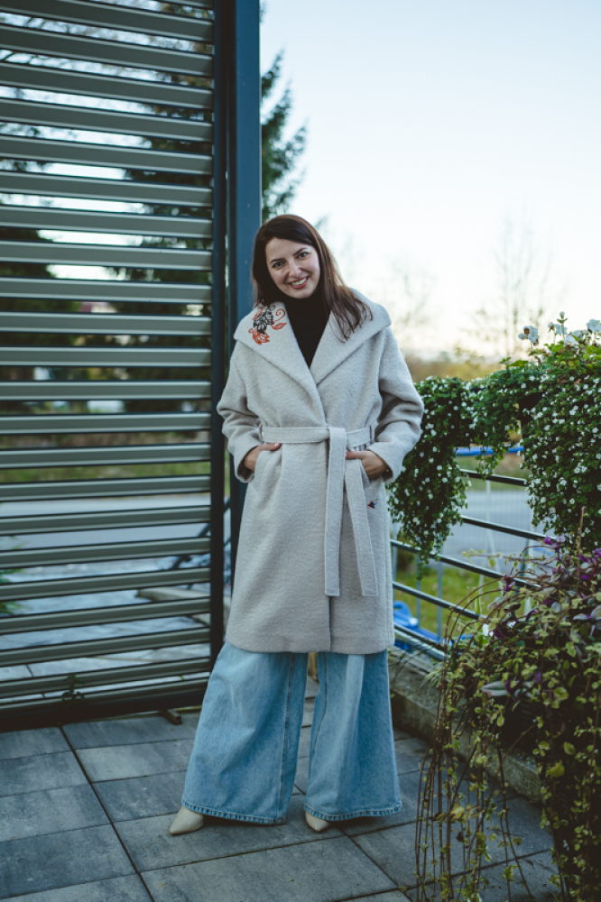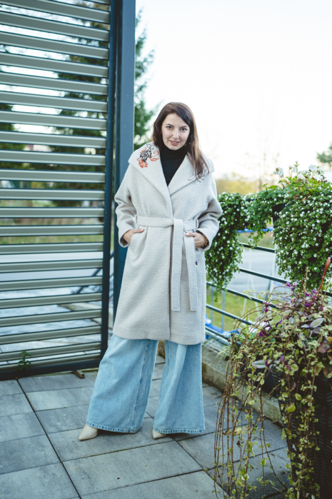 Jedinečný detail: Golier zdobí luxusná, precízna výšivka, ktorá dodáva kabátu nezameniteľný a originálny charakter. Opasok v páse umožňuje zvýrazniť siluetu. Ideálna voľba pre ženu, ktorá hľadá teplo, kvalitu a jedinečný dizajn.