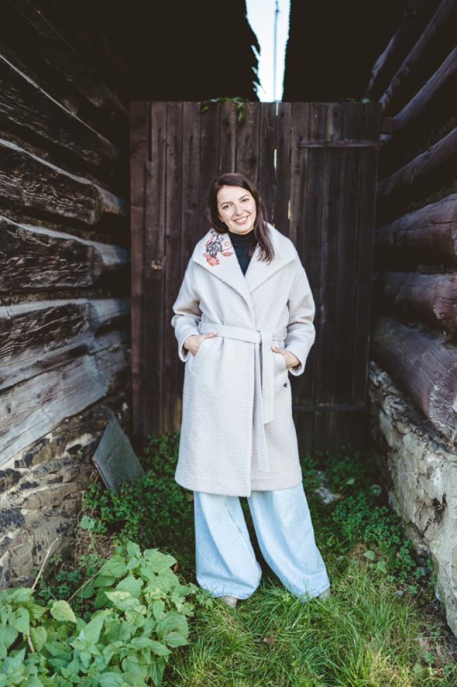 Zahaľte sa do tepla a neprehliadnuteľného štýlu s naším dámskym vlneným kabátom Krojove.sk v elegantnom svetlom odtieni.