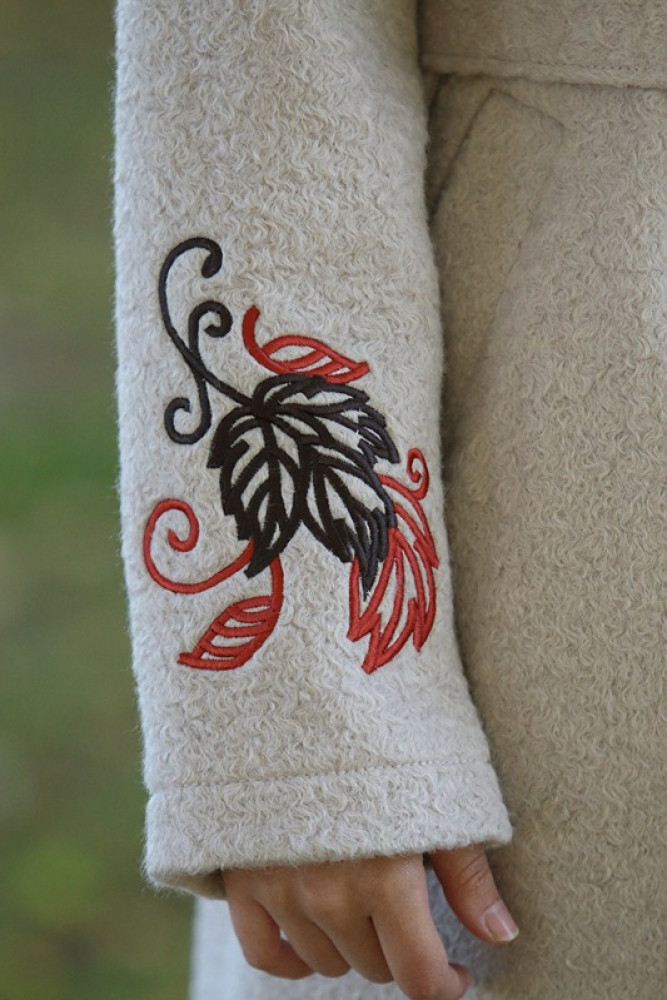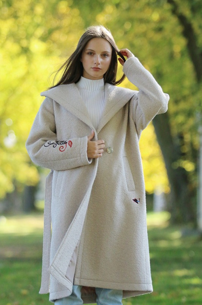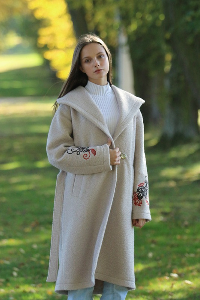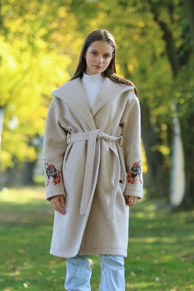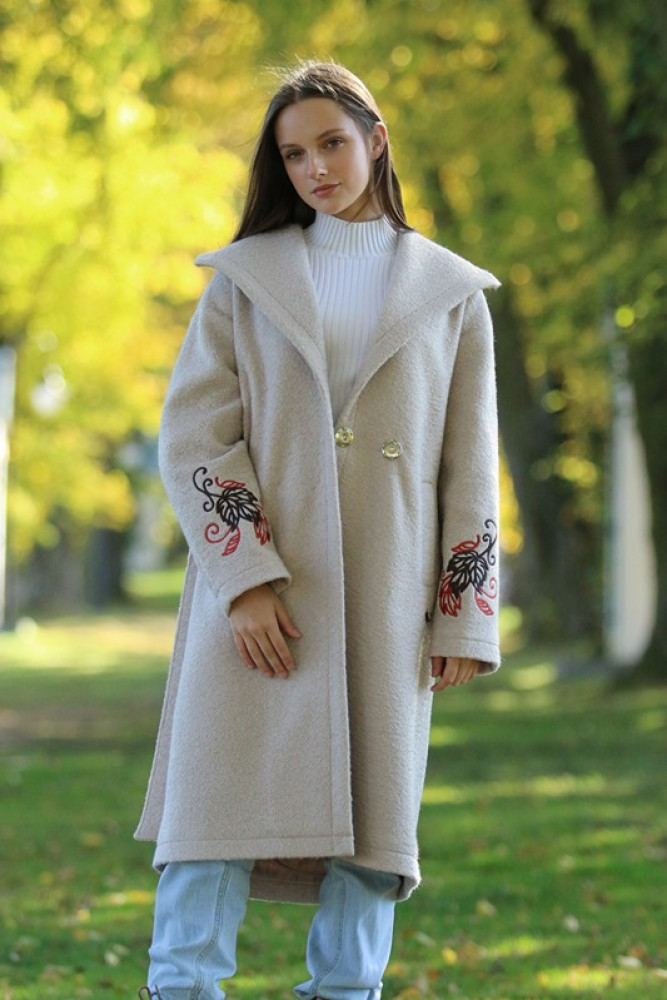 Jedinečný detail: Rukávy zdobí luxusná, precízna výšivka, ktorá dodáva kabátu nezameniteľný a originálny charakter. Opasok v páse umožňuje zvýrazniť siluetu. Ideálna voľba pre ženu, ktorá hľadá teplo, kvalitu a jedinečný dizajn.