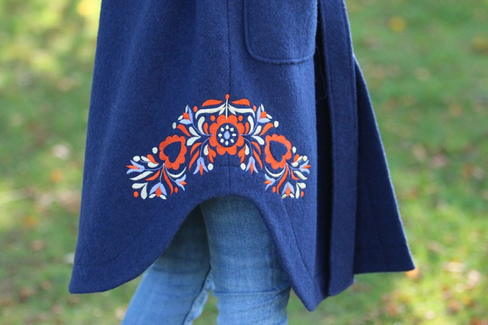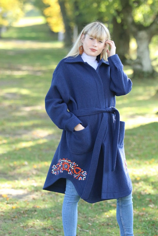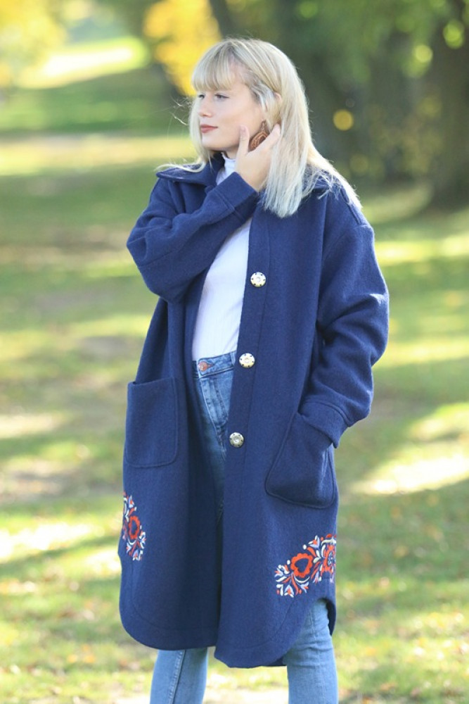 Jedinečný detail: Boky kabáta zdobí luxusná, precízna výšivka, ktorá dodáva kabátu nezameniteľný a originálny charakter. Opasok v páse umožňuje zvýrazniť siluetu. Ideálna voľba pre ženu, ktorá hľadá teplo, kvalitu a jedinečný dizajn.