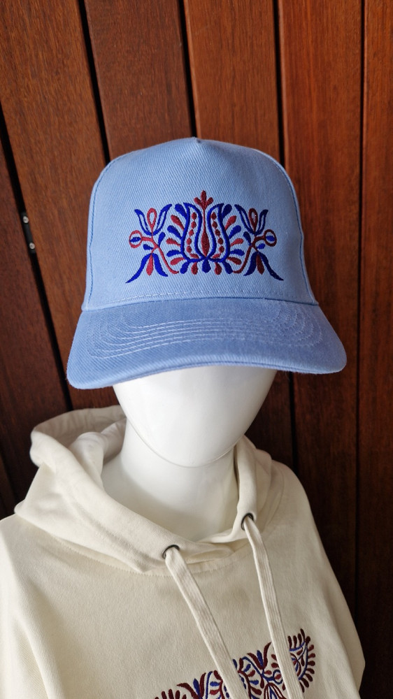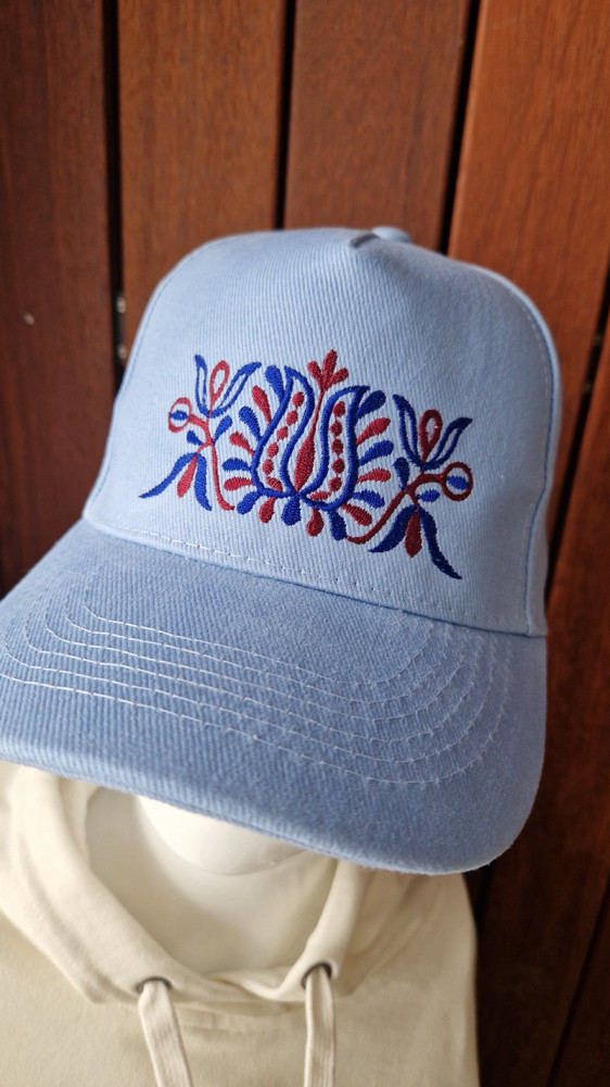 Hľadáte štýlový doplnok s nádychom tradície? Táto modrá šiltovka s ľudovou výšivkou spája moderný urban štýl a slovenské folklórne motívy.