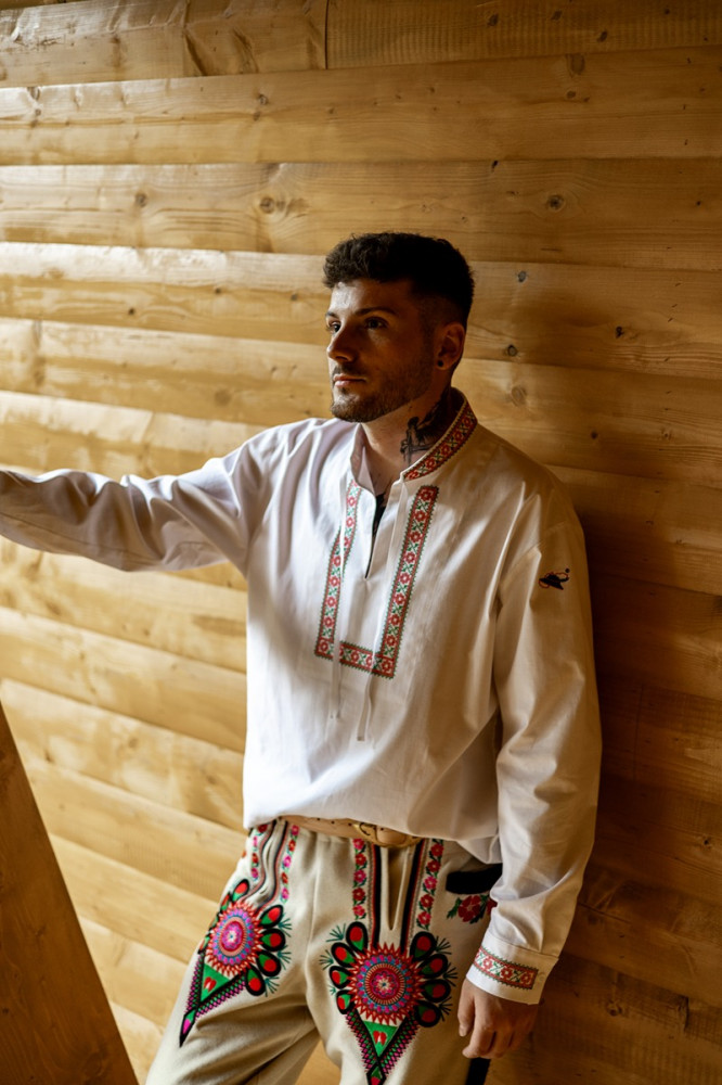 Košeľa je inšpirovaná slovenským folklórom a remeselnou zručnosťou našich predkov. Vyznačuje sa jednoduchým, pohodlným strihom a decentnými farebnými motívmi.