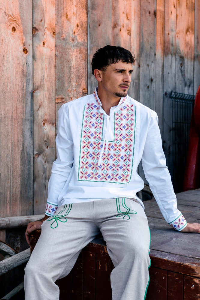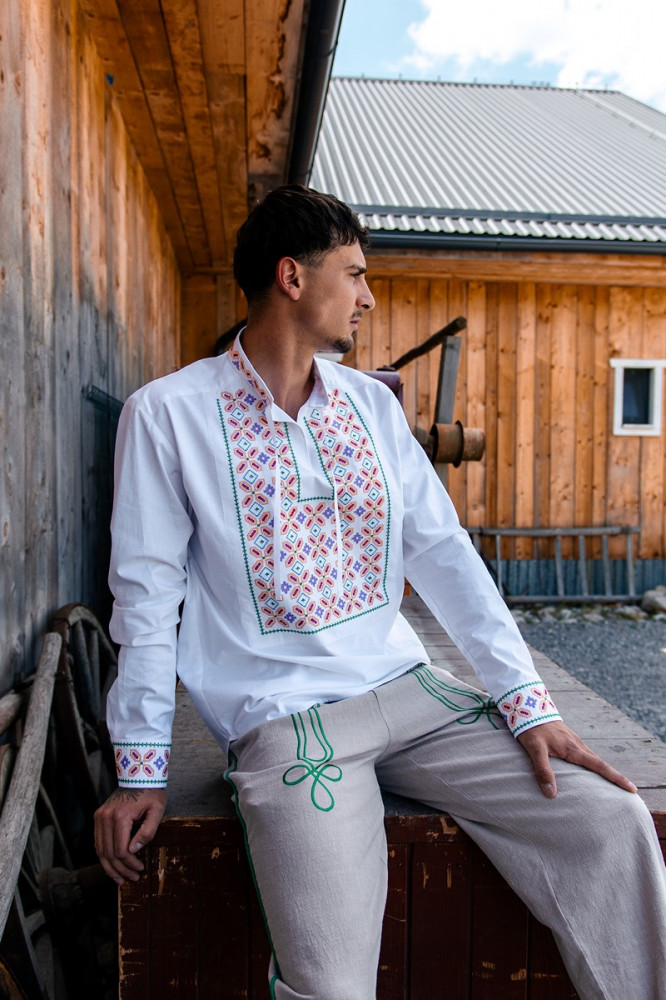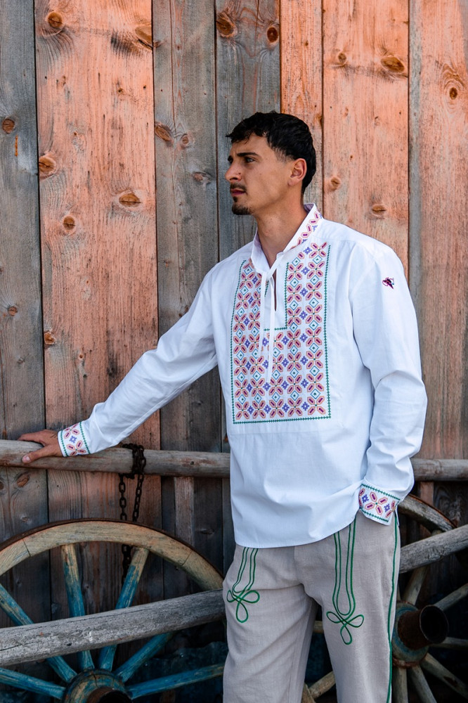 Košeľa je inšpirovaná slovenským folklórom a remeselnou zručnosťou našich predkov. Vyznačuje sa jednoduchým, pohodlným strihom a decentnými farebnými motívmi.