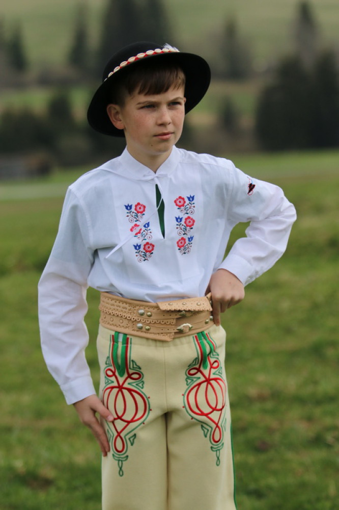 Chlapčenská vyšívaná košeľa s ľudovým motívom so stojačikom a šnúrkami na zaviazanie, s dlhým rukávom ukončeným manžetou. Košeľa je príjemná na dotyk, šetrná k pokožke.
