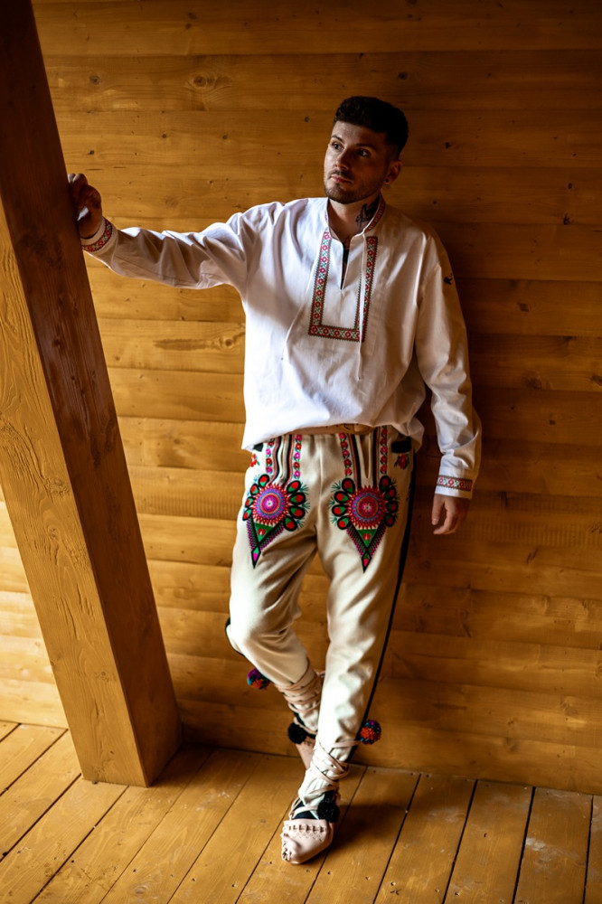 Košeľa je inšpirovaná slovenským folklórom a remeselnou zručnosťou našich predkov. Vyznačuje sa jednoduchým, pohodlným strihom a decentnými farebnými motívmi.