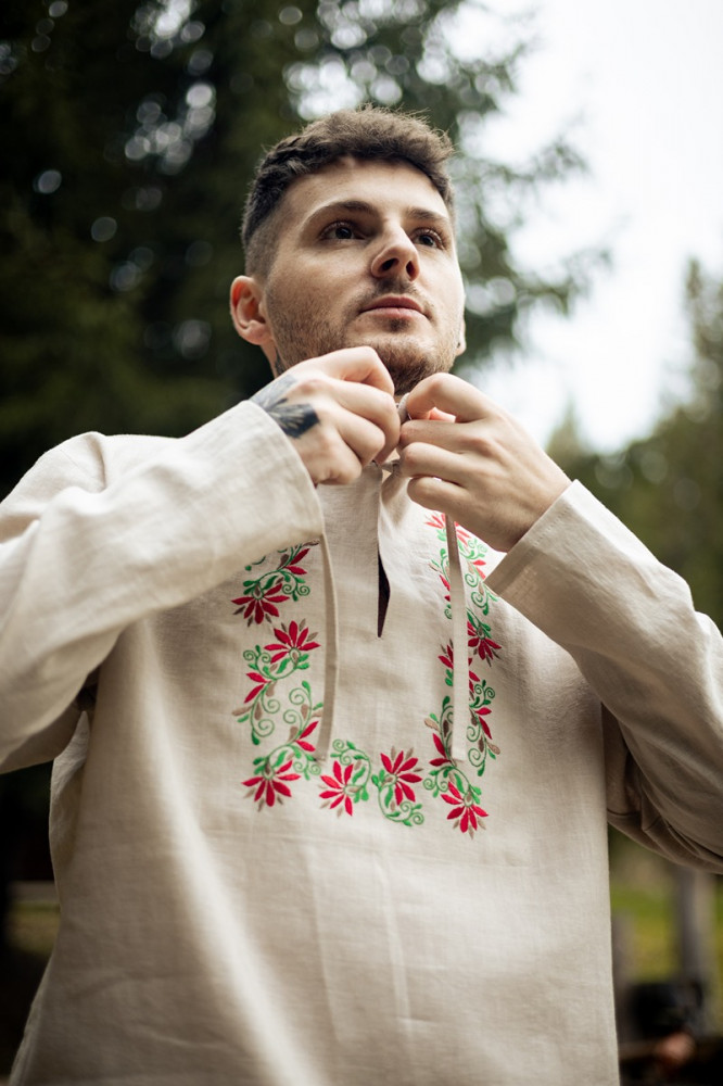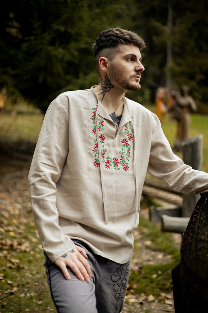 Košeľa je inšpirovaná slovenským folklórom a remeselnou zručnosťou našich predkov. Vyznačuje sa jednoduchým, pohodlným strihom a decentnými farebnými motívmi.