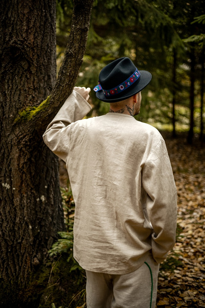 Košeľa je inšpirovaná slovenským folklórom a remeselnou zručnosťou našich predkov. Vyznačuje sa jednoduchým, pohodlným strihom a decentnými farebnými motívmi.
