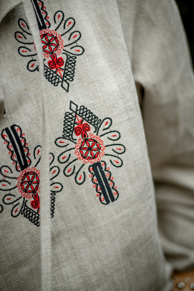 Košeľa je inšpirovaná slovenským folklórom a remeselnou zručnosťou našich predkov. Vyznačuje sa jednoduchým, pohodlným strihom a decentnými farebnými motívmi.