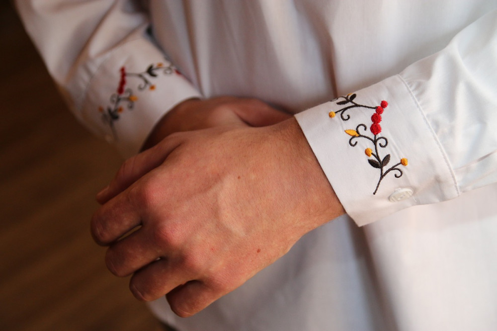 Tradičná pánska folklórna bavlnená košeľa Krojove.sk s jemnou výšivkou v oblasti hrude a na manžetách.