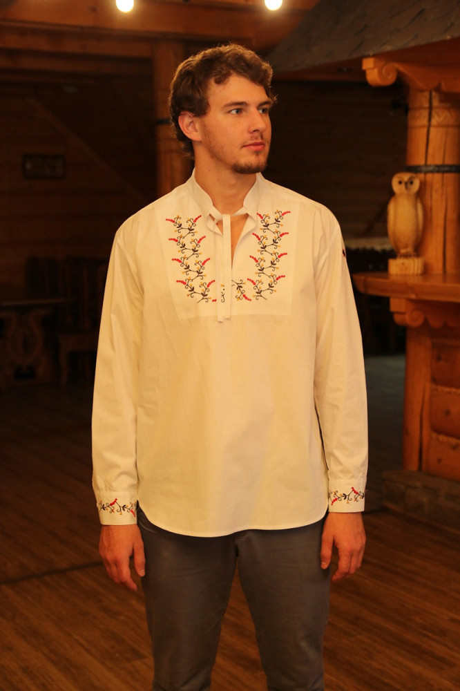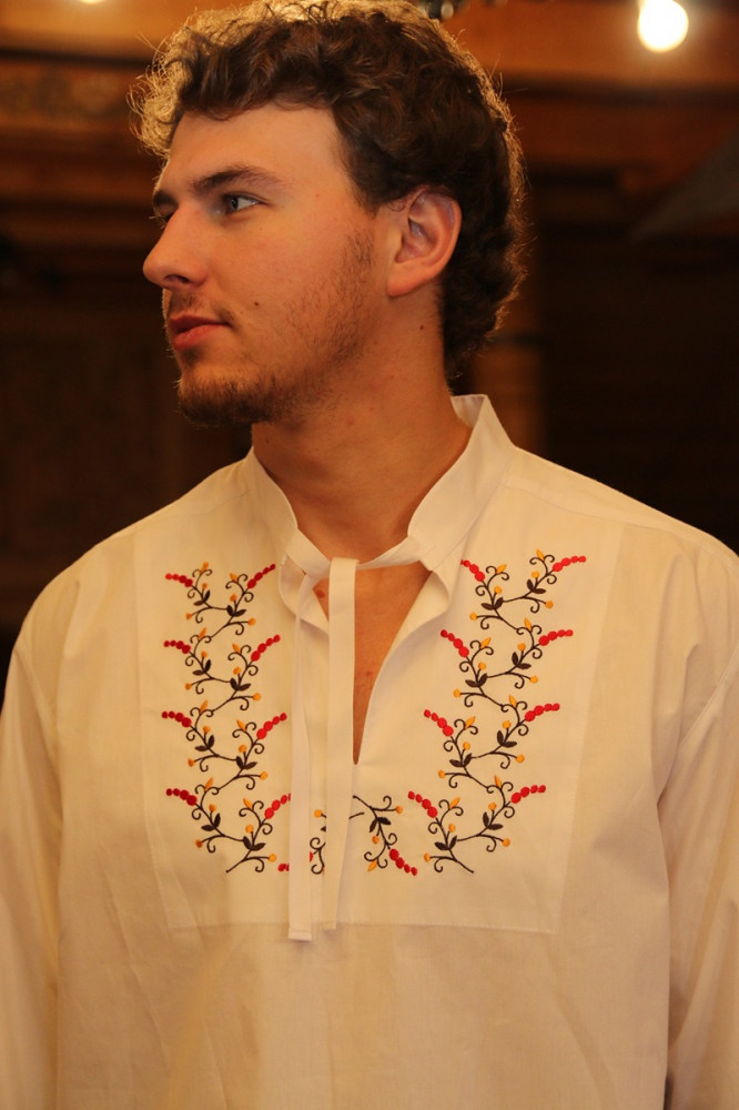 Ľudová vyšívaná bavlnená biela košeľa Filip - Krojove.sk
