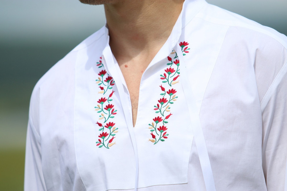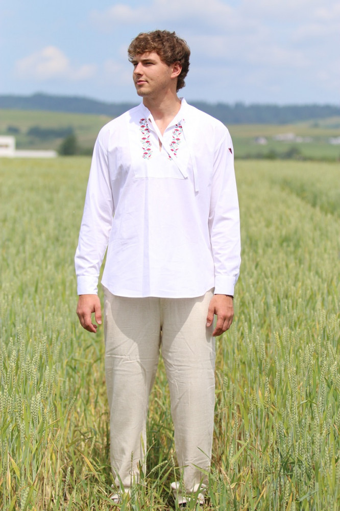 Ľudová vyšívaná bavlnená biela košeľa Václav - Krojove.sk