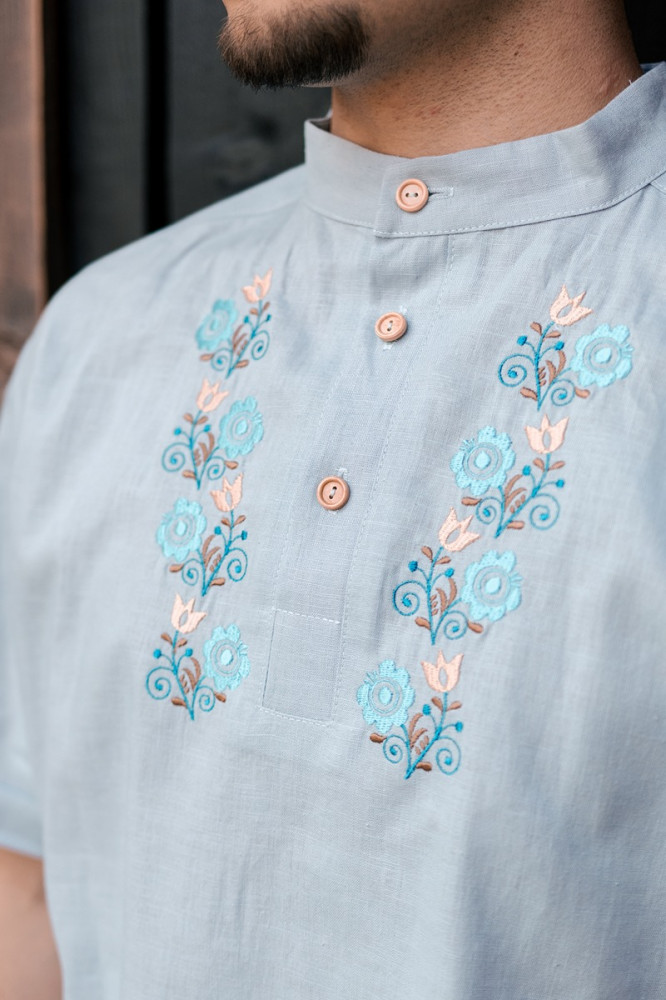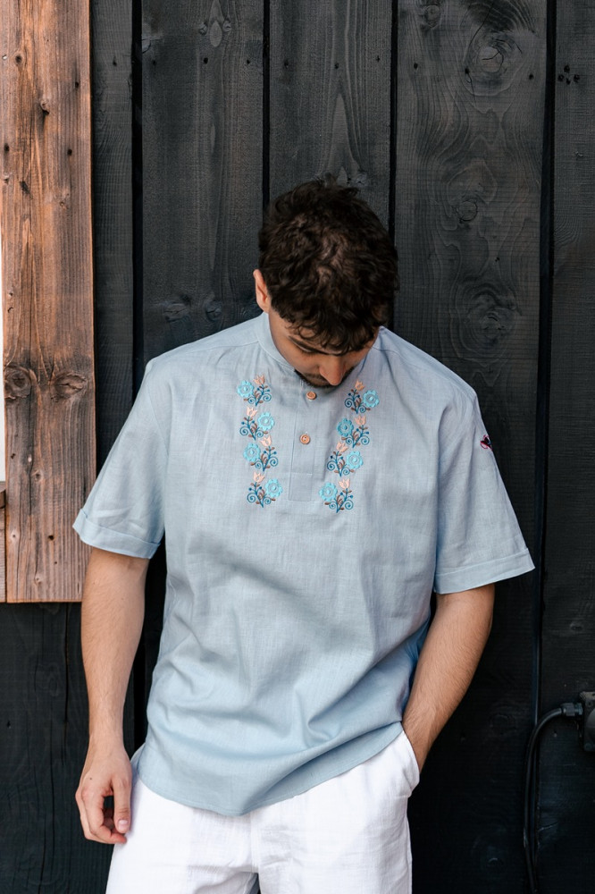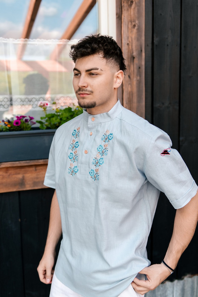 Vyrobená z kvalitného ľanového materiálu, poskytuje priedušnosť a komfort aj počas teplých dní. Výrazná výšivka na dekolte dodáva košeli nádych elegancie a folklórneho šarmu. Ideálna na každodenné nosenie alebo špeciálne príležitosti, kde chcete vyzerať štýlovo a zároveň sa cítiť príjemne.