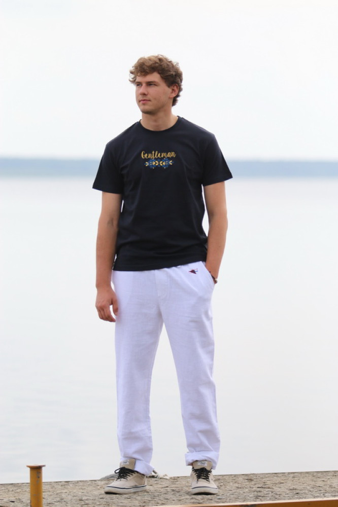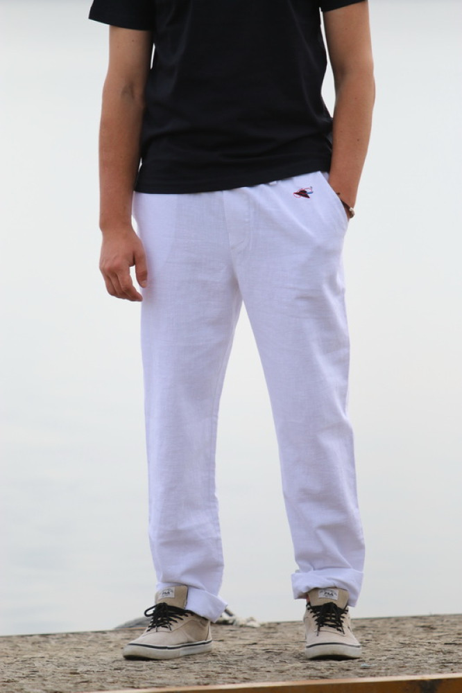 Kvalitne prepracované pánske nohavice ušité zo 100% ľanu. Strih nohavíc je klasický s pohodlnou gumou v páse, bočnými a zadnými vreckami. Sú príjemné na nosenie. Môžete ich kombinovať s našimi čistými alebo vyšívanými ľanovými košeľami.