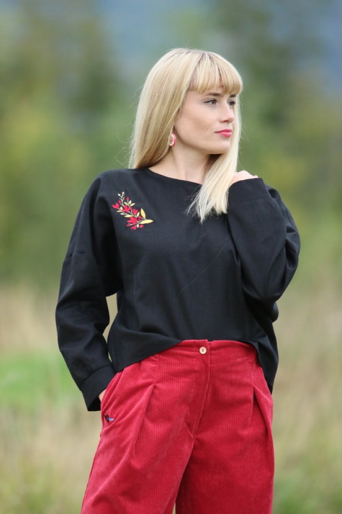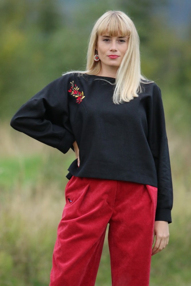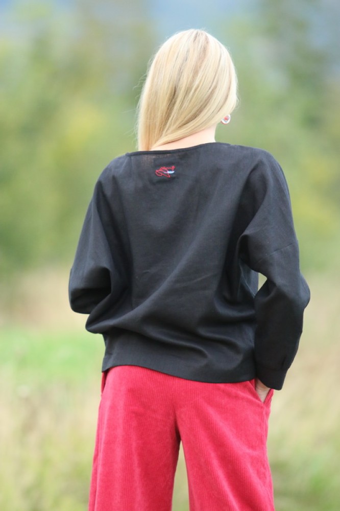 Štýlové a veľmi pohodlné ľanové tričko oversize strihu. Je vzdušné, ľahké, poskytuje komfort počas horúcich letných dní. Sviežosť a jedinečnosť mu dodáva farebná výšivka. Je možné ho kombinovať s ¾ alebo dlhými nohavicami z našej dielne.