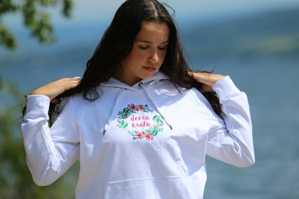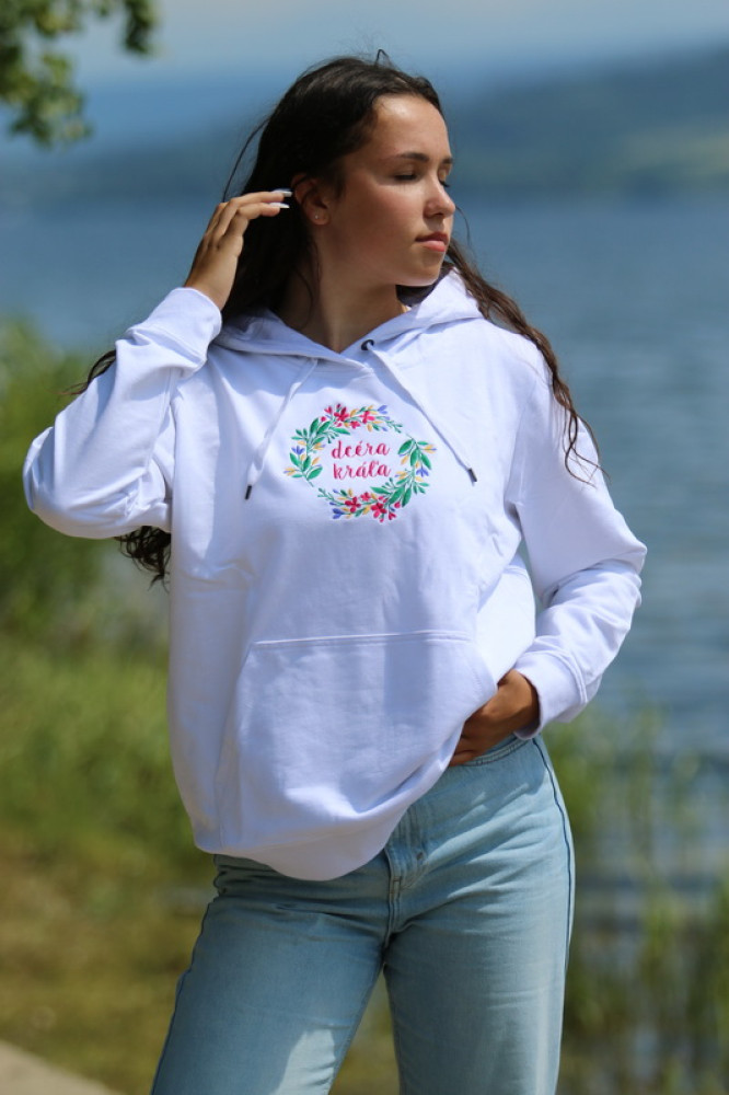 Vyšívaná mikina DCÉRA KRÁĽA biela