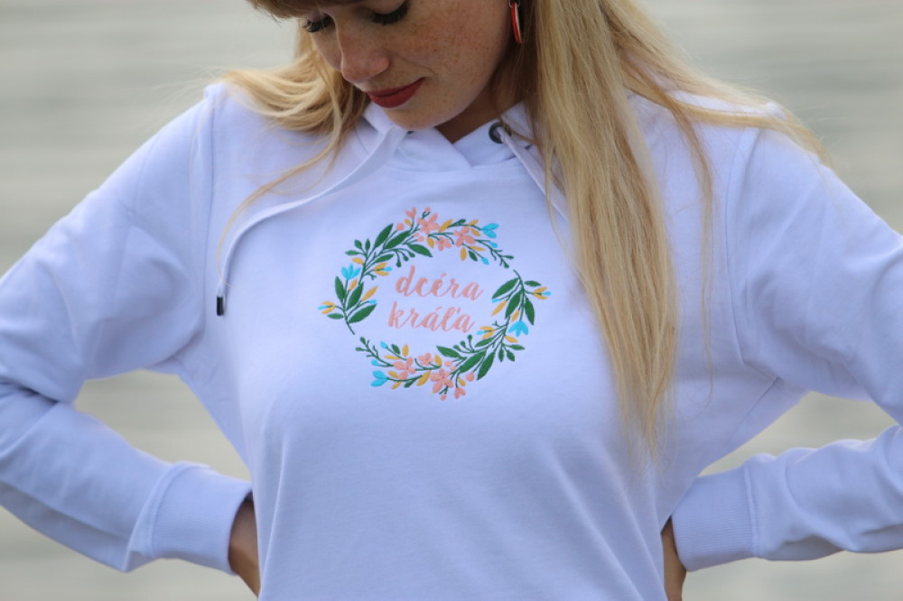 Trendová dámska vyšívaná mikina s dlhým rukávom a kapucňou na stiahnutie šnúrkou, so všitým vreckom na prednom diele v štýle klokanky. Je veľmi pohodlná a príjemná na nosenie. Vhodná aj ako originálny darček.