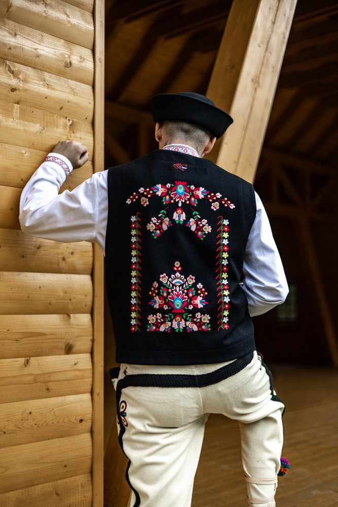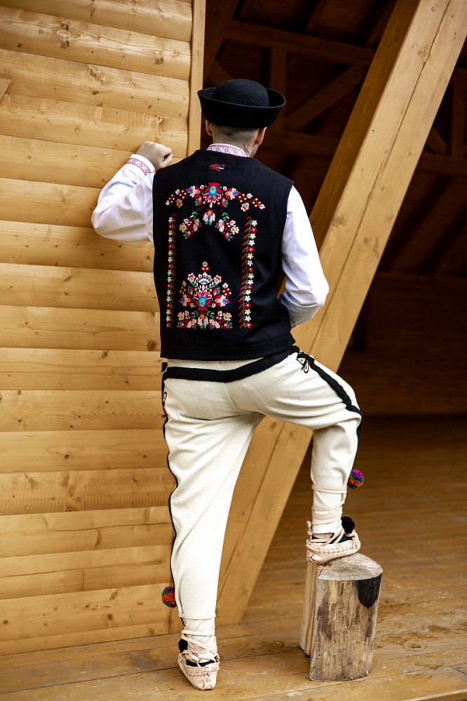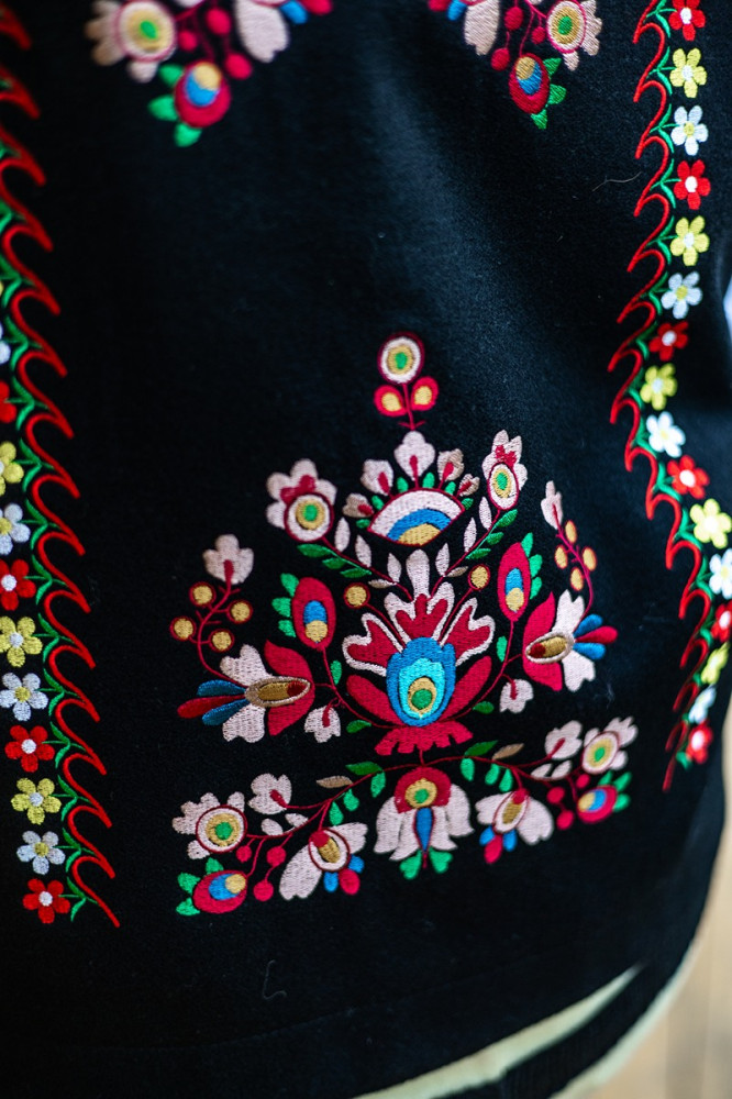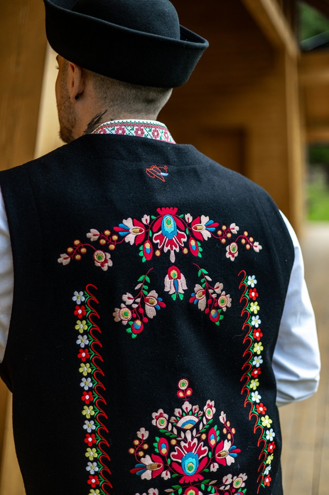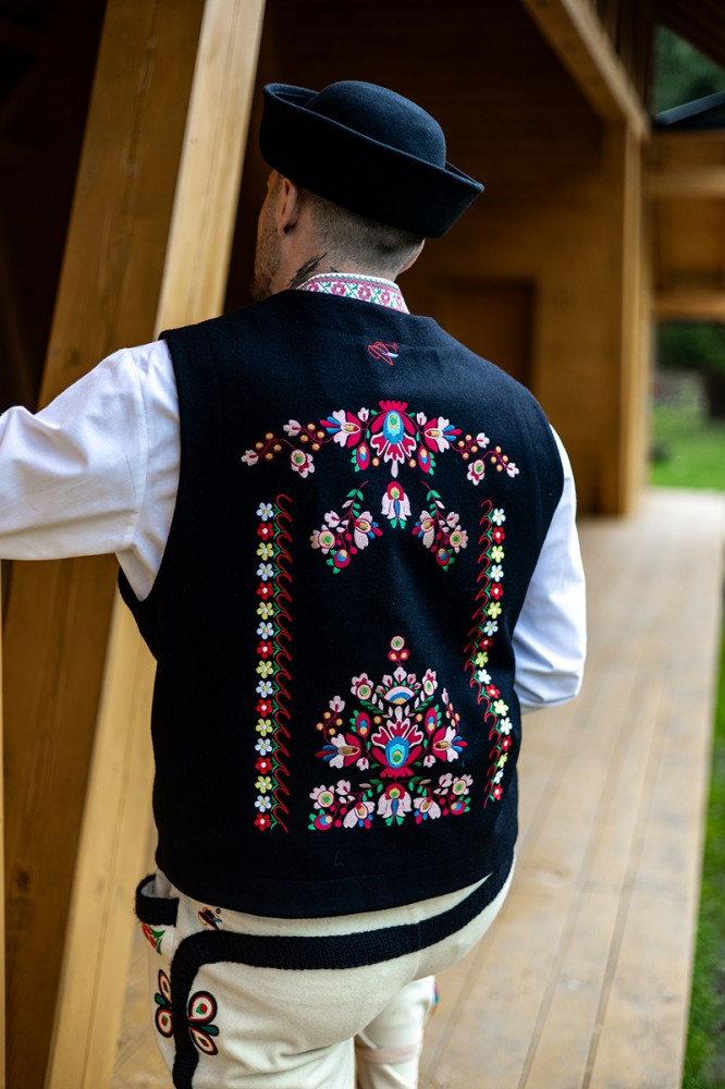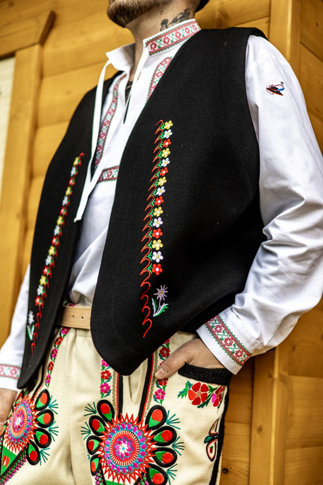 100% vlnená vyšívaná pánska vesta Krojove.sk, vhodná na rôzne ľudové podujatia a slávnosti.