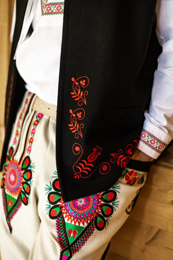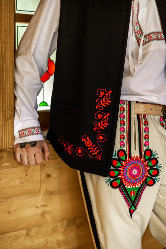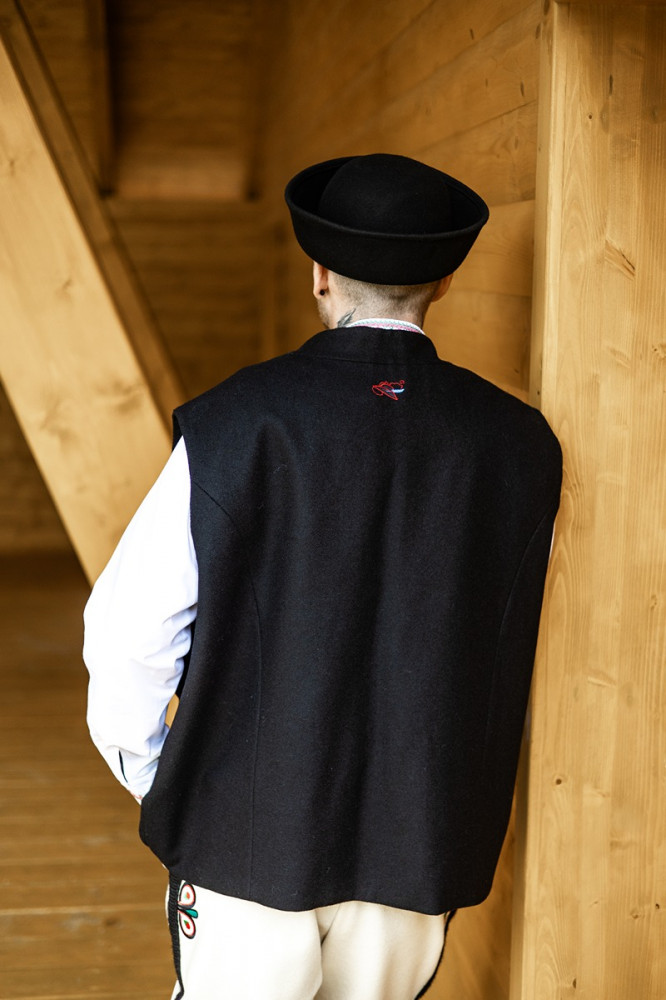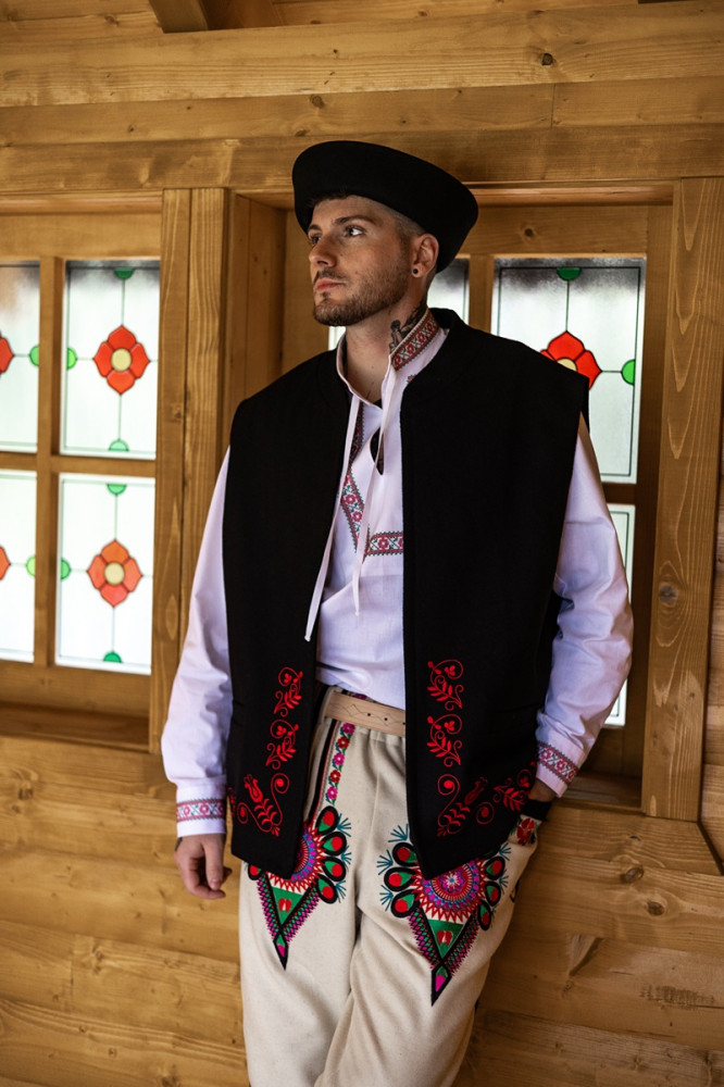 100% vlnená vyšívaná pánska súkenná vesta Krojove.sk, vhodná na rôzne ľudové podujatia a slávnosti. Naša folklórna vesta nie je len módnym doplnkom, ale aj spôsobom, ako vyjadriť vašu osobnosť a lásku k tradíciám. Je ideálna na nosenie na festivaloch, oslavy či rodinné stretnutia. V kombinácii s košeľou a nohavicami vytvoríte jedinečný outfit, ktorý upúta pozornosť.