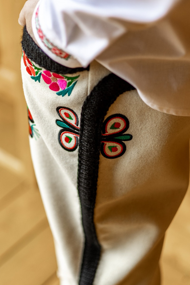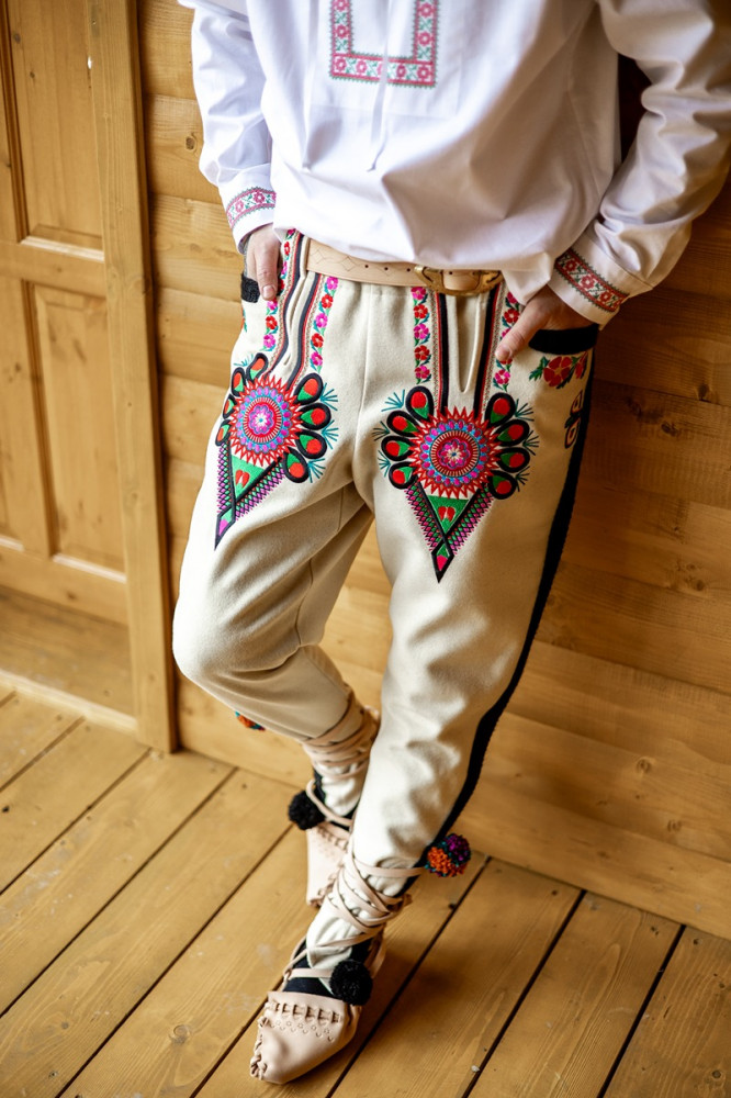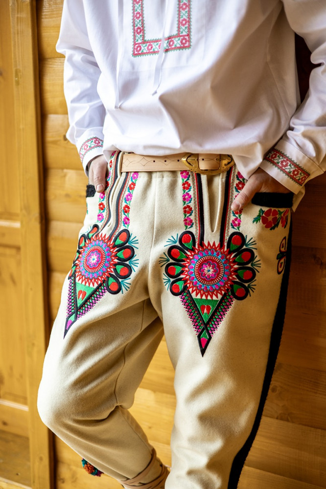 Každý pár nohavíc je jedinečný, ručne šitý s dôrazom na detail. V kombinácii s ľanovou košeľou vytvára autentický folklórny odev vhodný na slávnosti, svadby, festivaly či reprezentatívne vystúpenia.