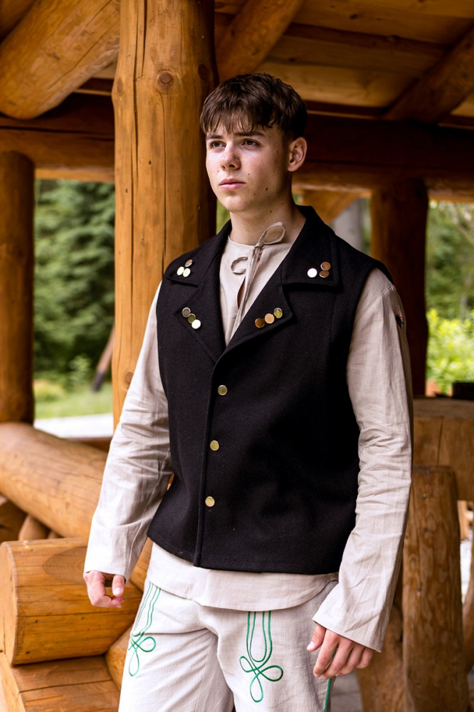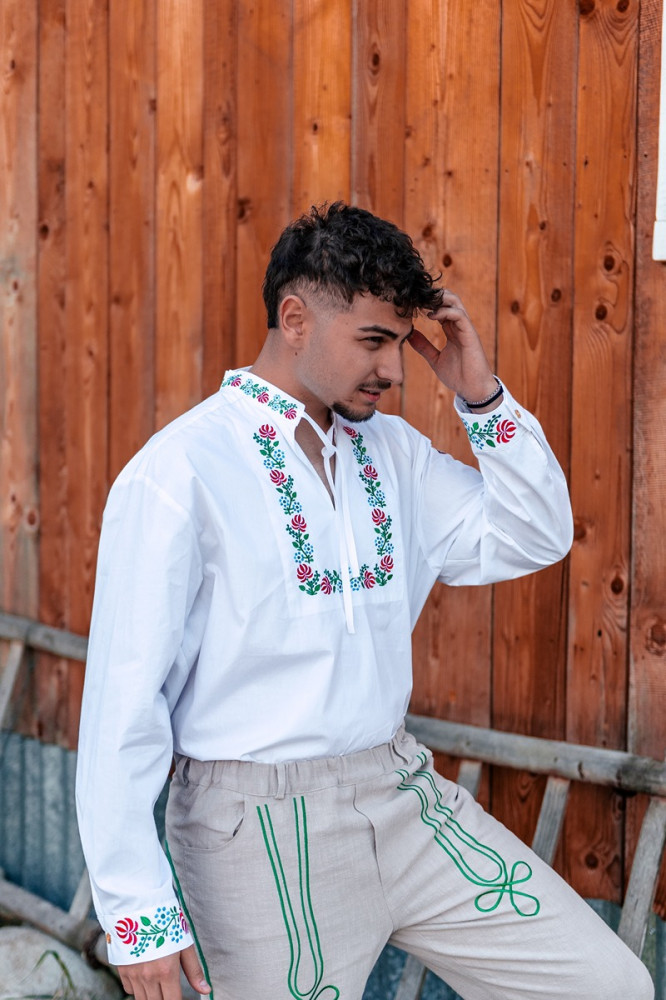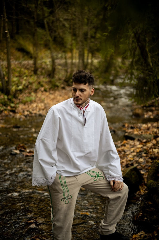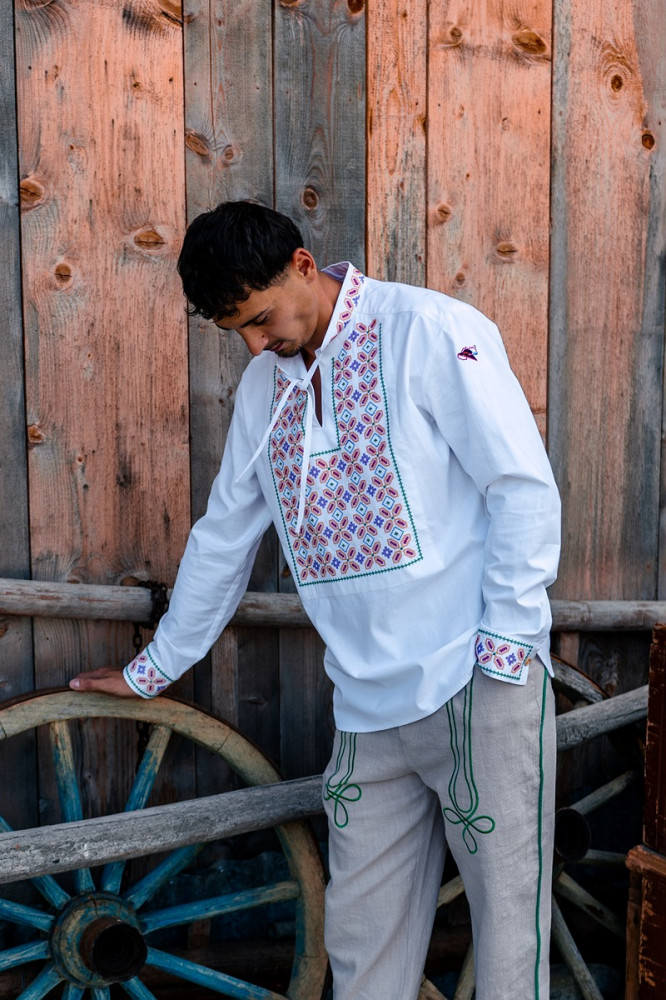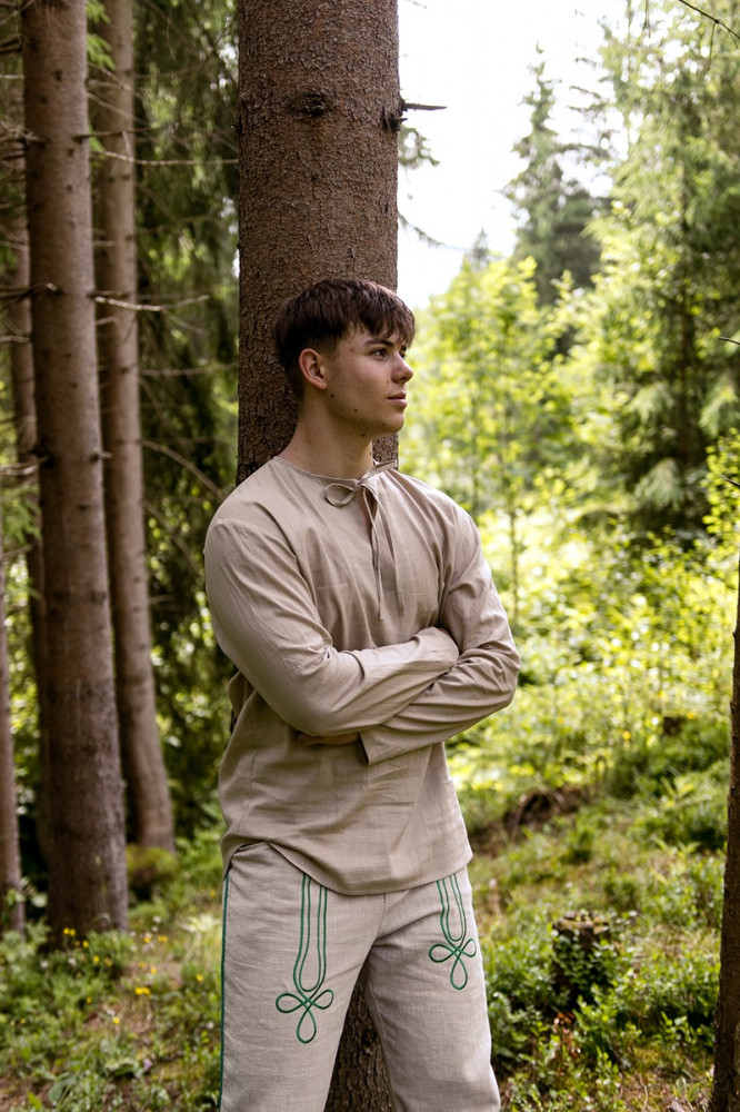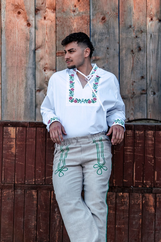 Kvalitne prepracované pánske vyšívané nohavice ušité zo 100% ľanu. Strih nohavíc je klasický s pohodlnou gumou v páse, bočnými a zadnými vreckami. Sú príjemné na nosenie na rôzne ľudové podujatia. Môžete ich kombinovať s našimi čistými, alebo vyšívanými ľanovými košeľami.