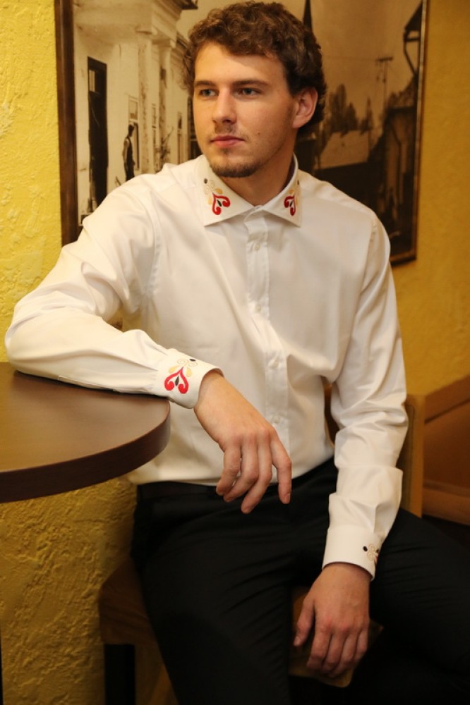 Elegantná biela pánska košeľa s diskrétnou výšivkou na golieri a manžetách. Prémiová bavlna pre formálny aj smart casual štýl. Pohodlie a luxus v jednom kuse.