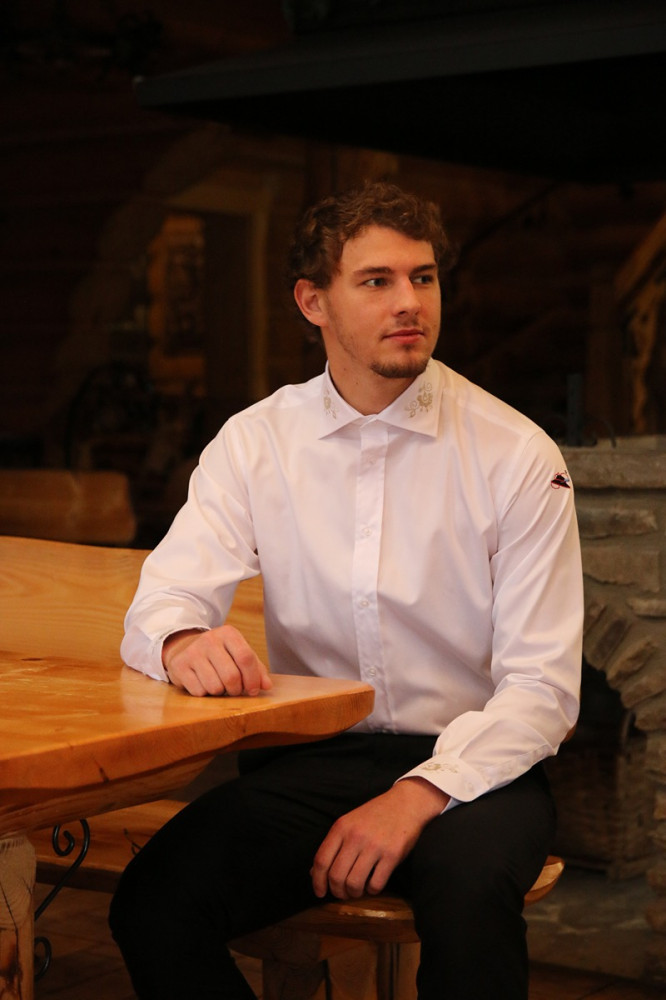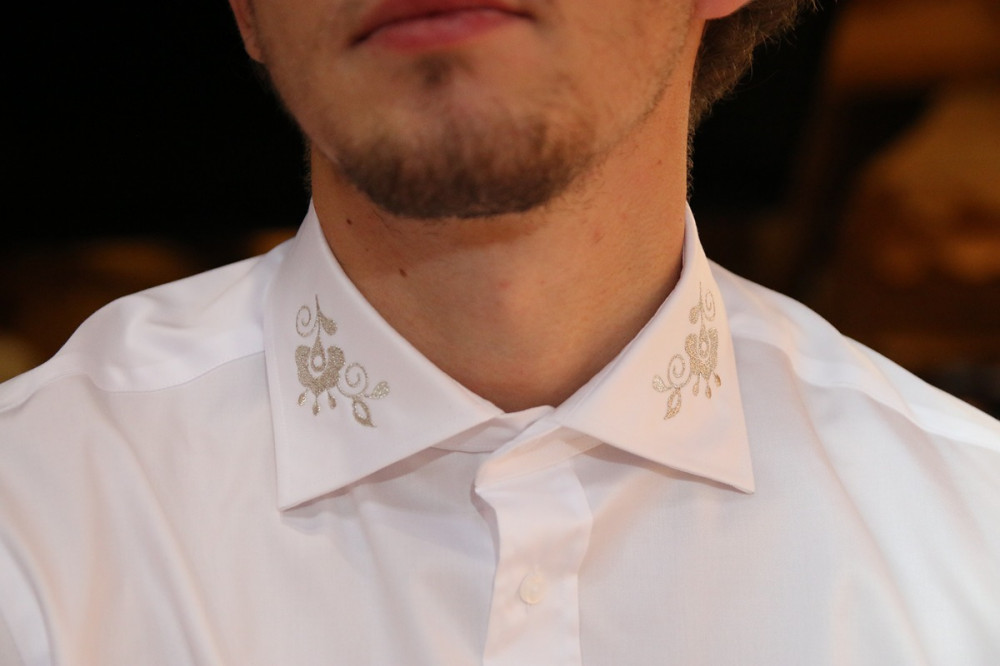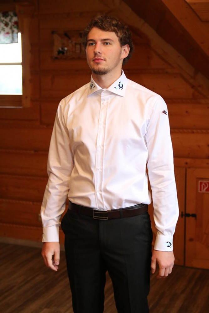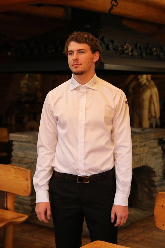 Elegantná biela pánska košeľa s diskrétnou výšivkou na golieri a manžetách. Prémiová bavlna pre formálny aj smart casual štýl. Pohodlie a luxus v jednom kuse.