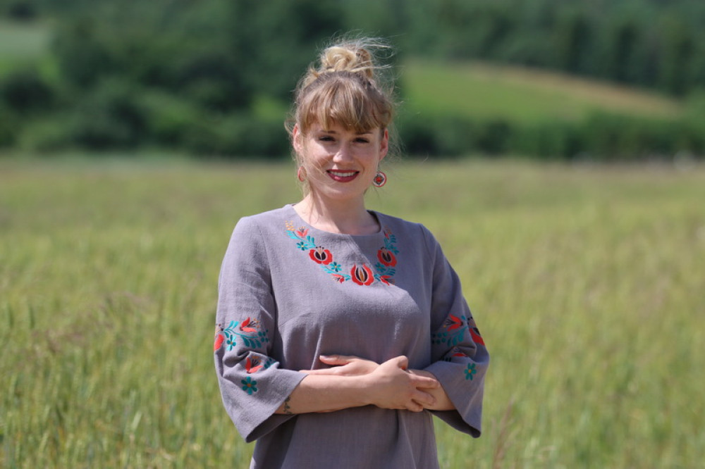 Dominantným prvkom je folklórna výšivka v oblasti výstrihu a rukávov, inšpirovaná tradičnými motívmi, ktorá dodáva šatám jedinečný charakter
