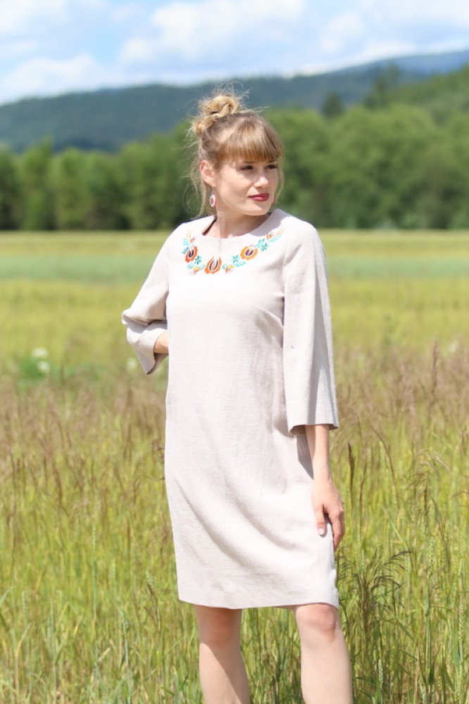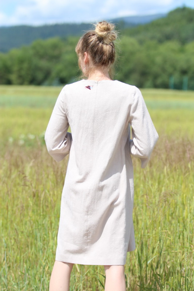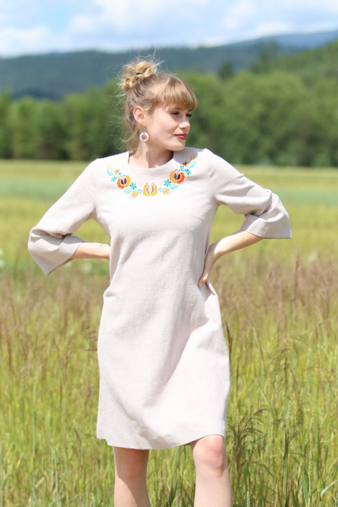 Krátke vyšívané ľanové šaty Smotanová sága