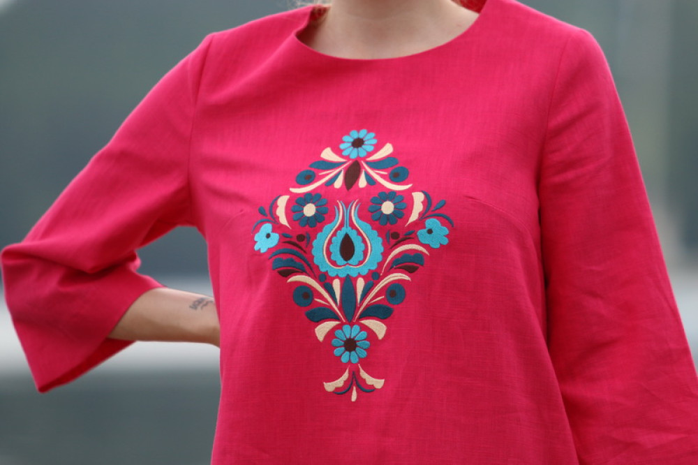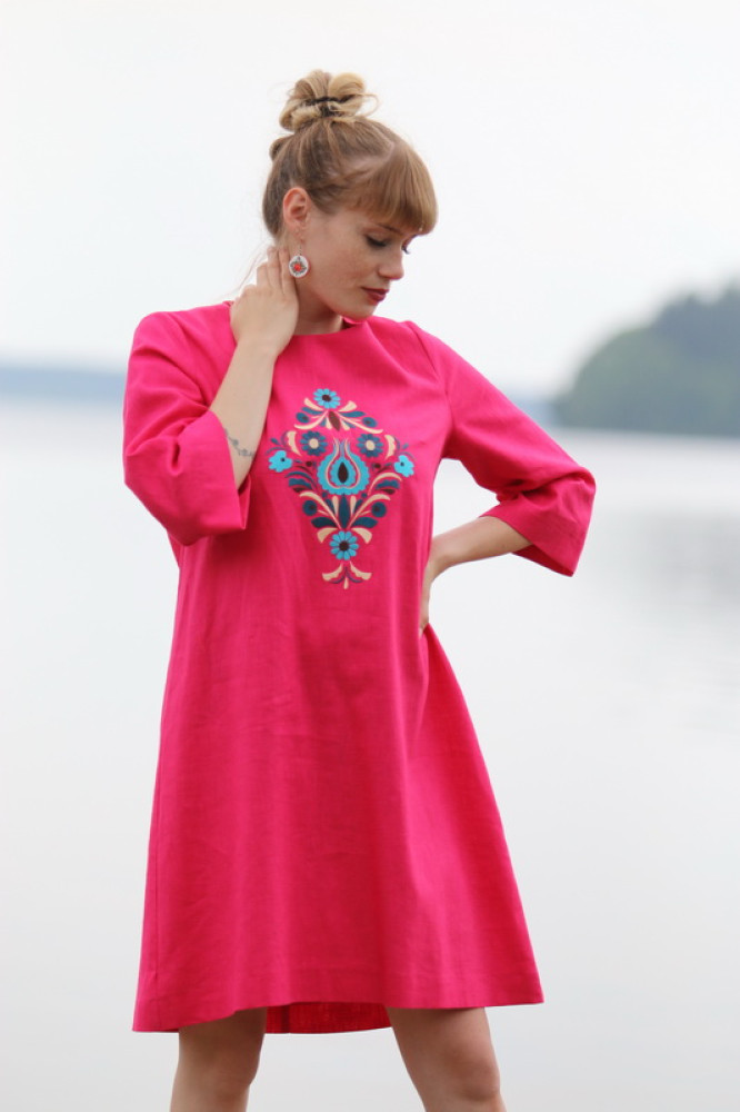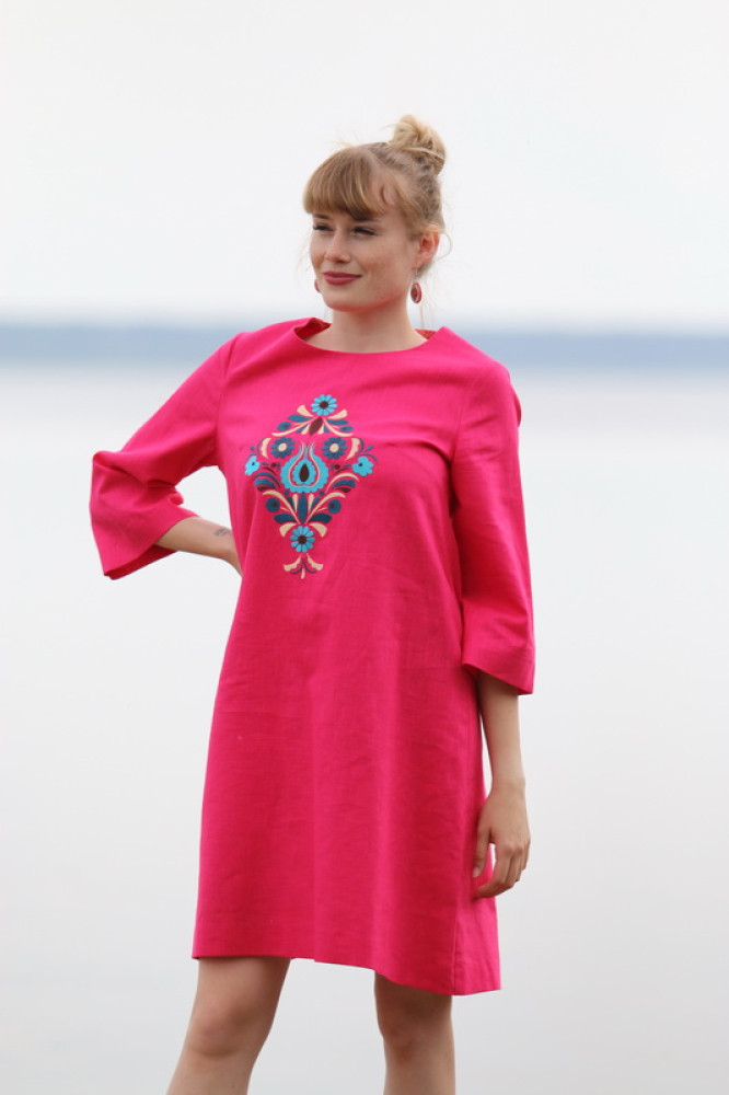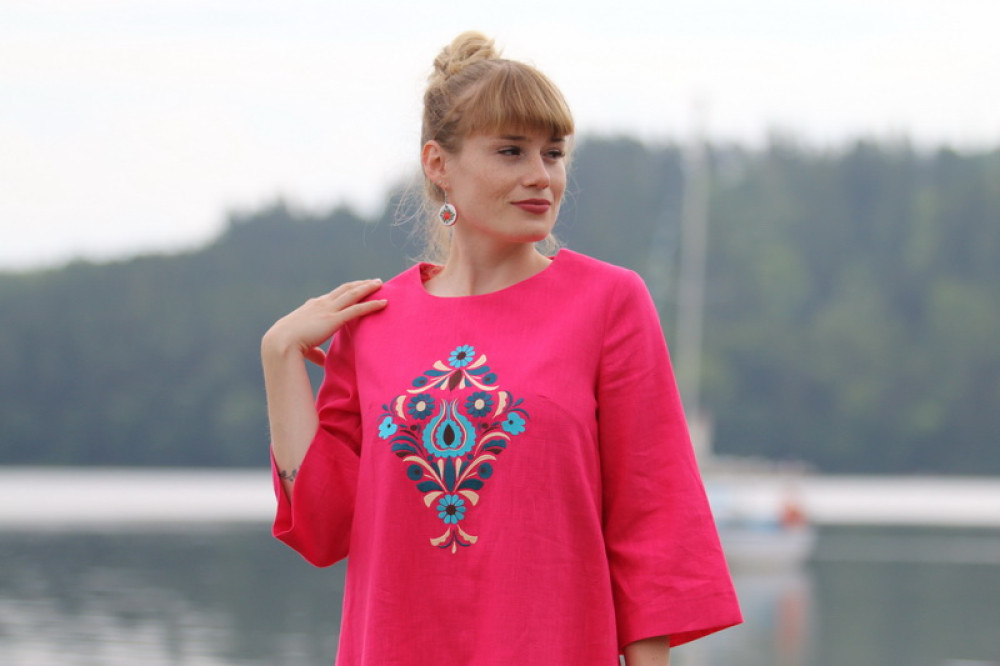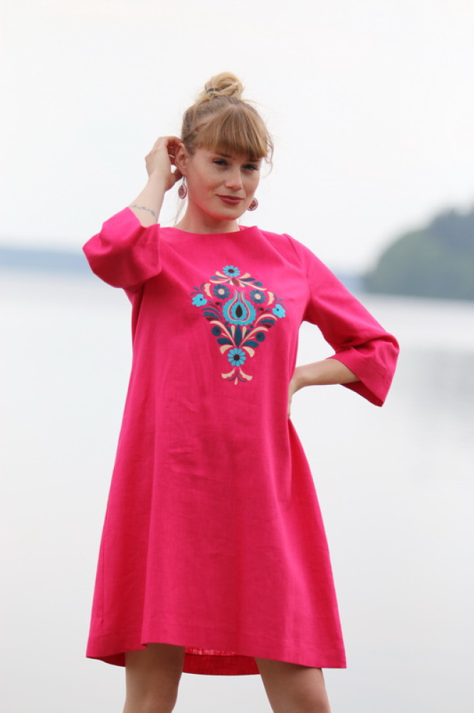 Ľanové šaty s kratším rozšíreným rukávikom, prepracovaného a pohodlného voľného strihu do áčka, ktorý jemne kopíruje postavu. Pôsobia výrazne žensky. Sú vhodné nielen na spoločenské udalosti, ale aj k celoročnému noseniu.