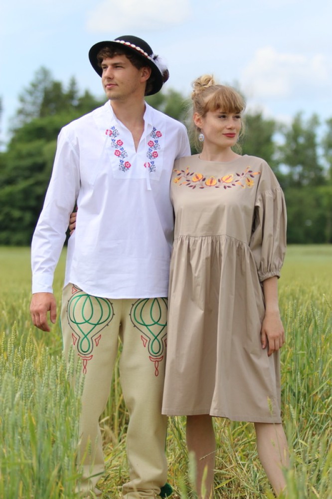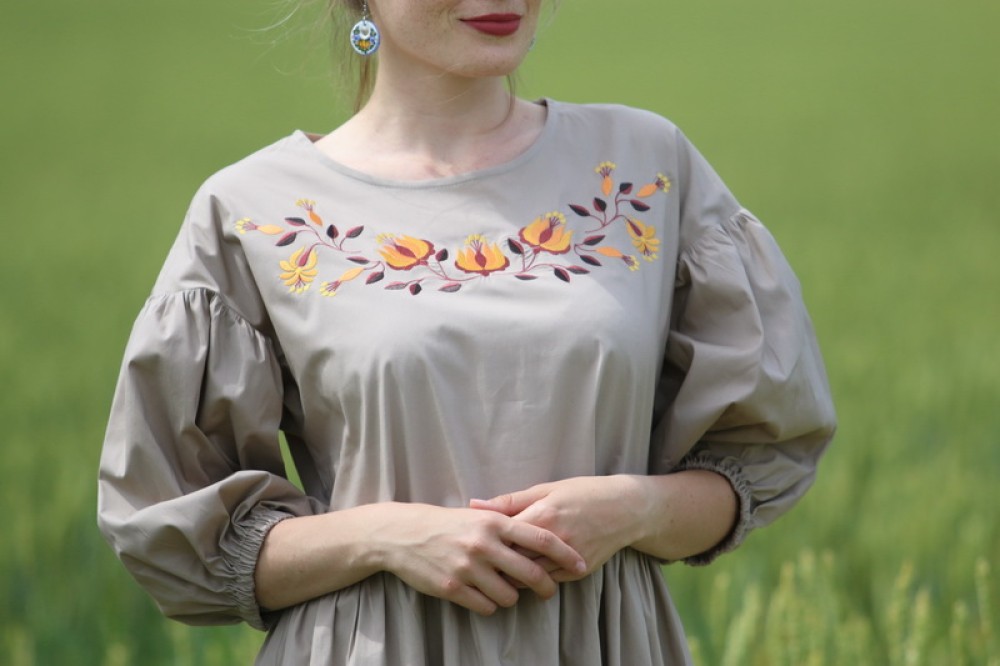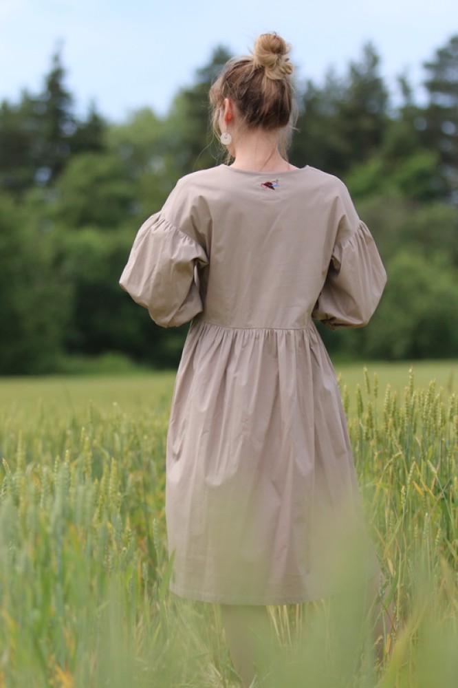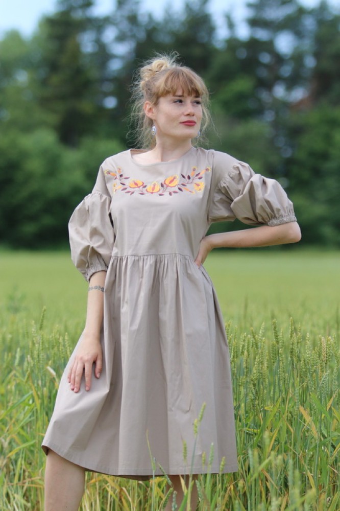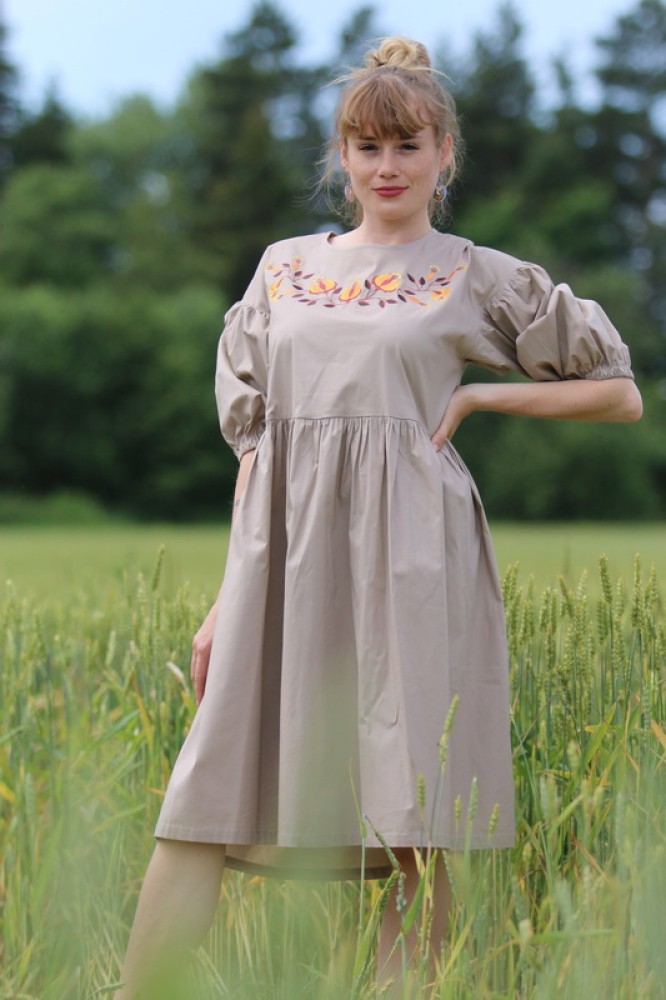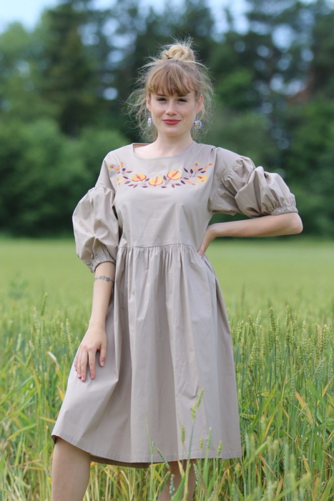 Vyšívané bavlnené šaty oversize strihu s nariasenými puff rukávmi. Sú vhodné na celoročné nosenie na spoločenské akcie, kultúrne podujatia alebo len tak do mesta. Pôsobia romanticky, sú veľmi ľahké, pohodlné a elegantné.