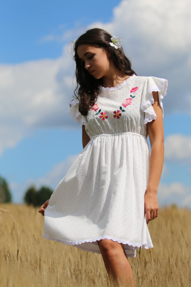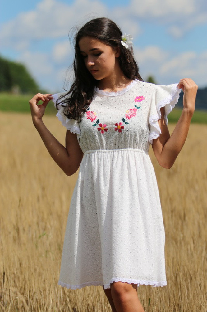 Unikátne madeira vyšívané šaty lemované s krásnou háčkovanou čipkou. Sú veľmi pohodlné, voľné a vzdušné. Vhodné na letné teplé dni, na kultúrne podujatie, či romantickú prechádzku.