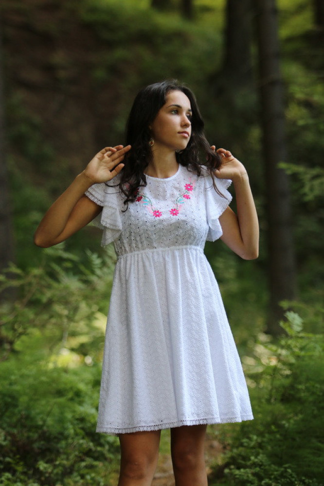 Unikátne madeira vyšívané šaty lemované s krásnou háčkovanou čipkou. Sú veľmi pohodlné, voľné a vzdušné. Vhodné na letné teplé dni, na kultúrne podujatie, či romantickú prechádzku.
