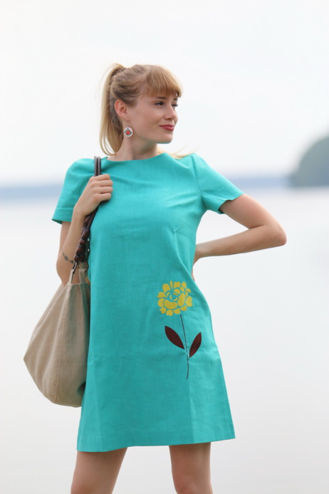 Ľanové šaty s krátkym rukávikom, prepracovaného a pohodlného voľného strihu do áčka, ktorý jemne kopíruje postavu. Pôsobia výrazne žensky. Sú vhodné nielen na spoločenské udalosti, ale aj k celoročnému noseniu.