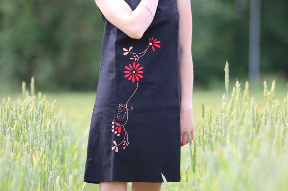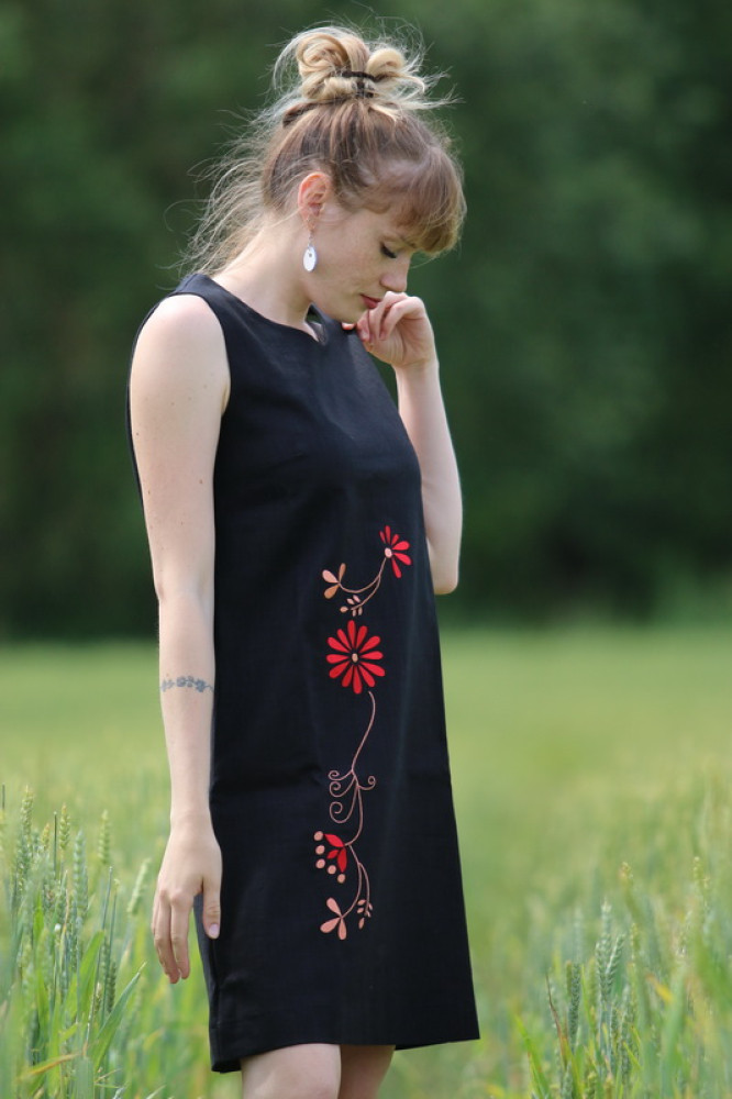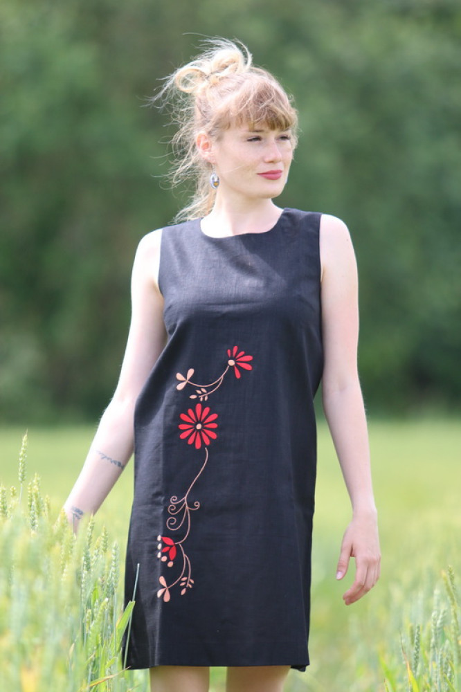 Ľanové šaty bez rukávov, prepracovaného a pohodlného voľného strihu do áčka, ktorý jemne kopíruje postavu. Pôsobia výrazne žensky. Sú vhodné nielen na spoločenské udalosti, ale aj k celoročnému noseniu.