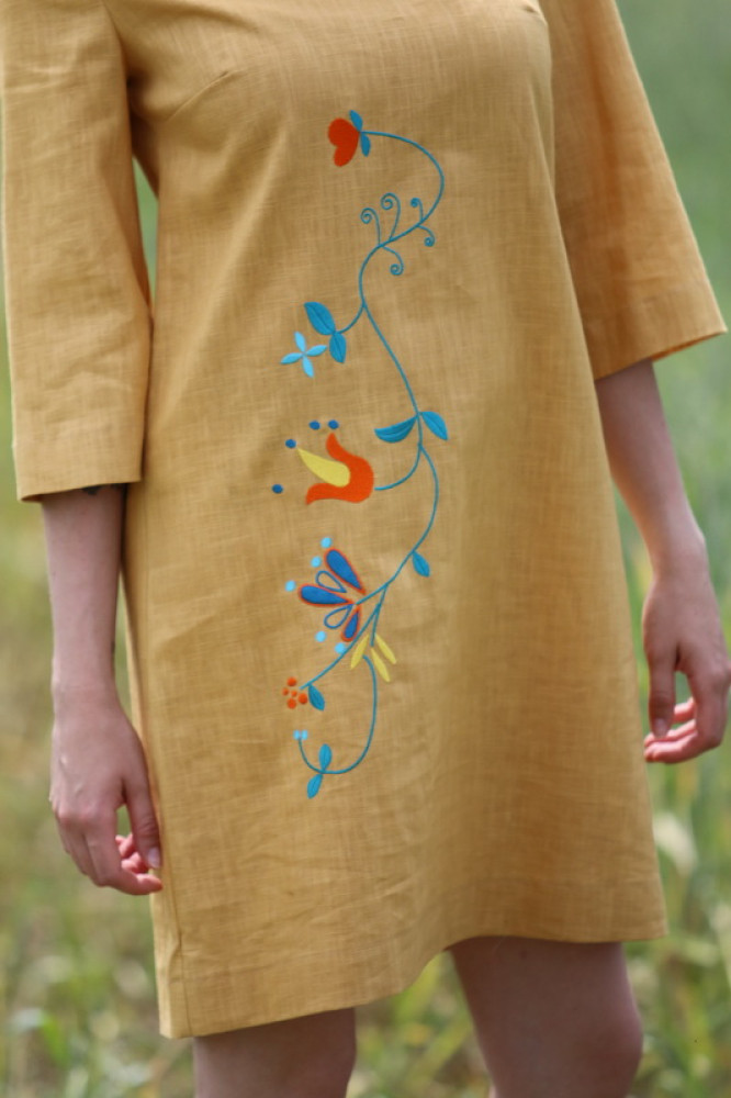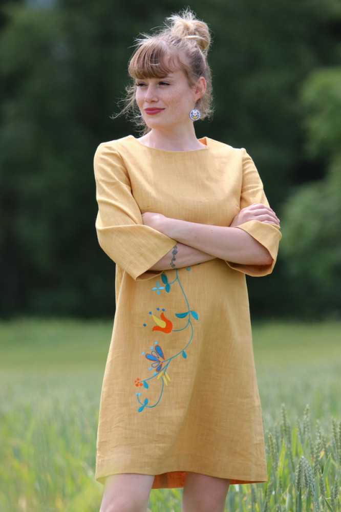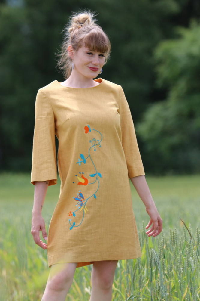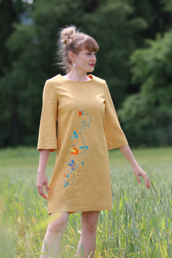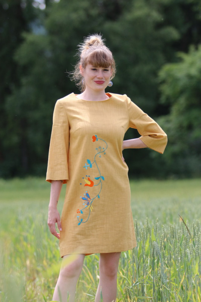 Ľanové šaty s kratším rozšíreným rukávikom, prepracovaného a pohodlného voľného strihu do áčka, ktorý jemne kopíruje postavu. Pôsobia výrazne žensky. Sú vhodné nielen na spoločenské udalosti, ale aj k celoročnému noseniu.
