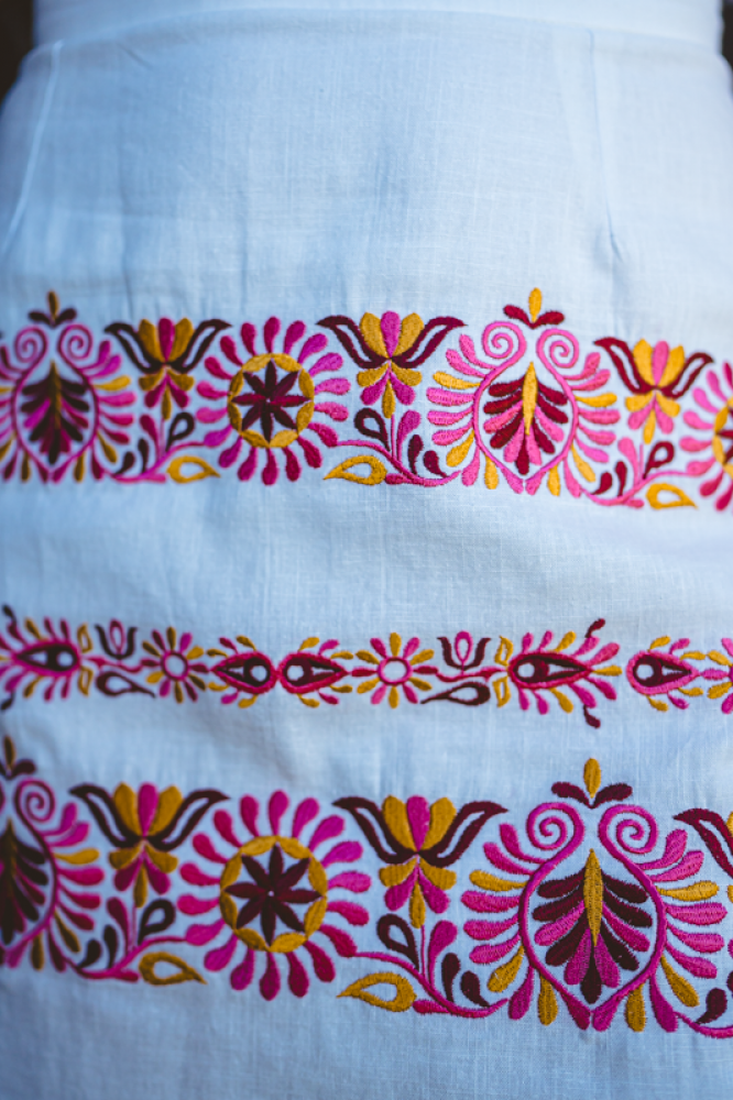 Ľanová vyšívaná krátka sukňa Čataj